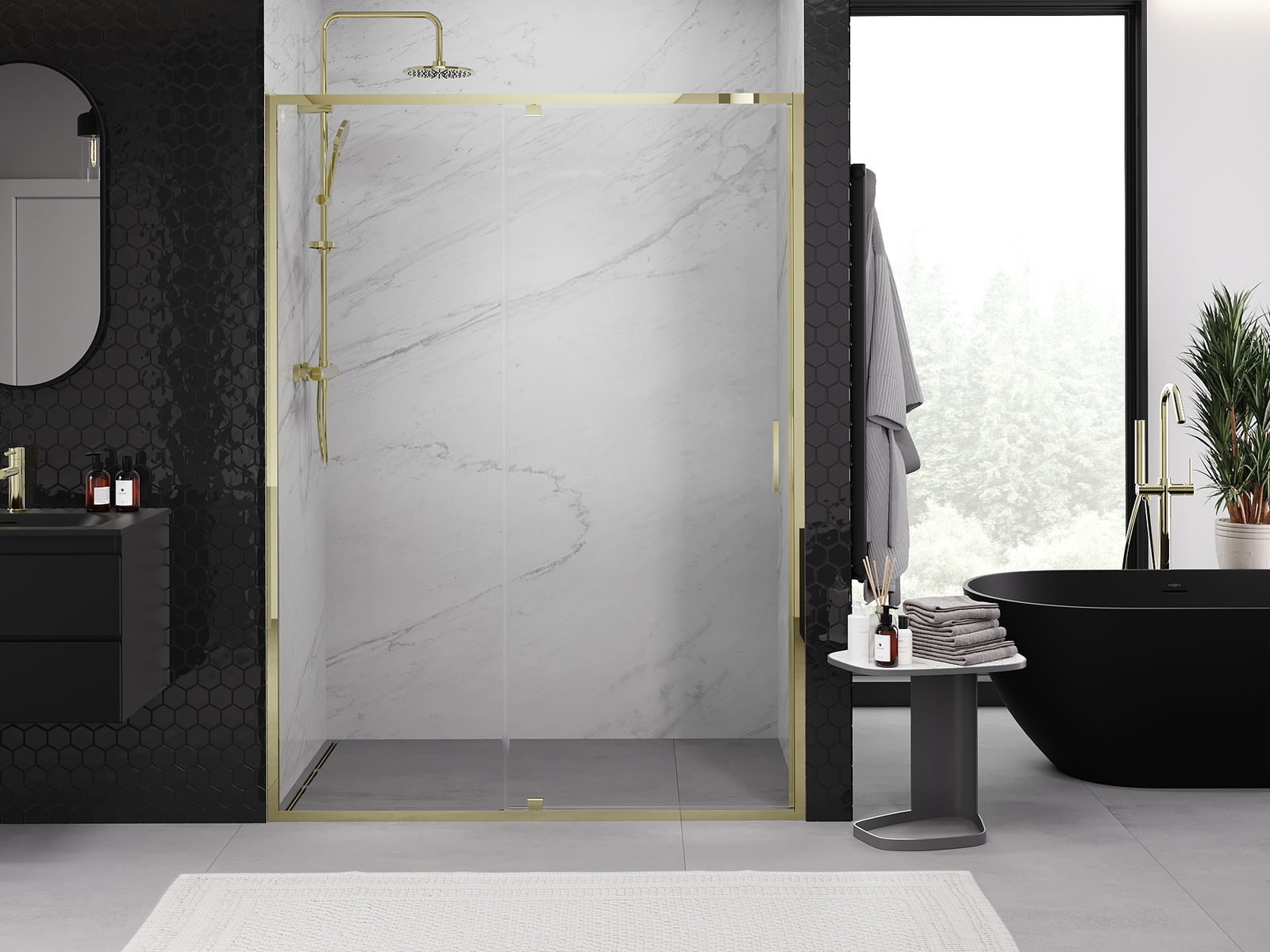 Mexen Exo scharnierende douchedeur 140 cm, transparant, goud - 819-140-000-50-00