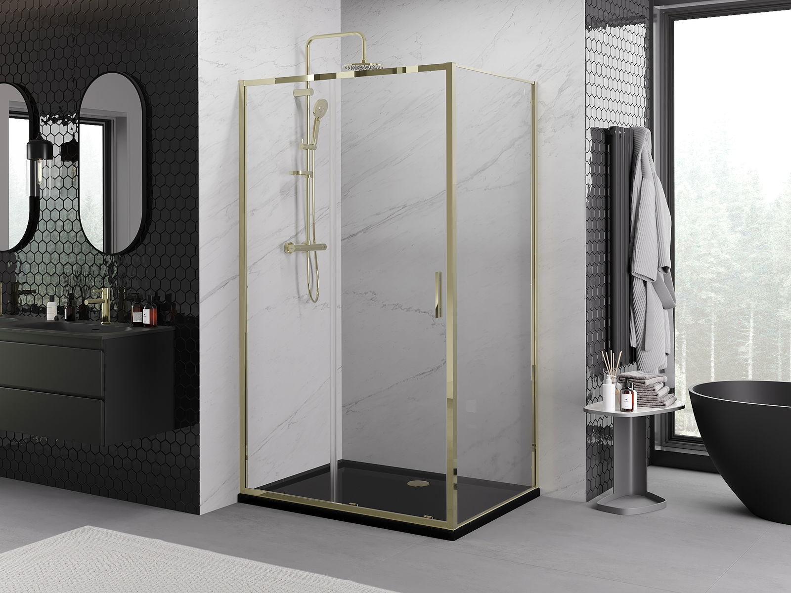 Schuifdeuren bewegen op speciale rails en hebben geen extra ruimte nodig om te openen, waardoor ze geschikt zijn voor kleinere badkamers. Dankzij dubbele metalen wielen is hun beweging soepel.
