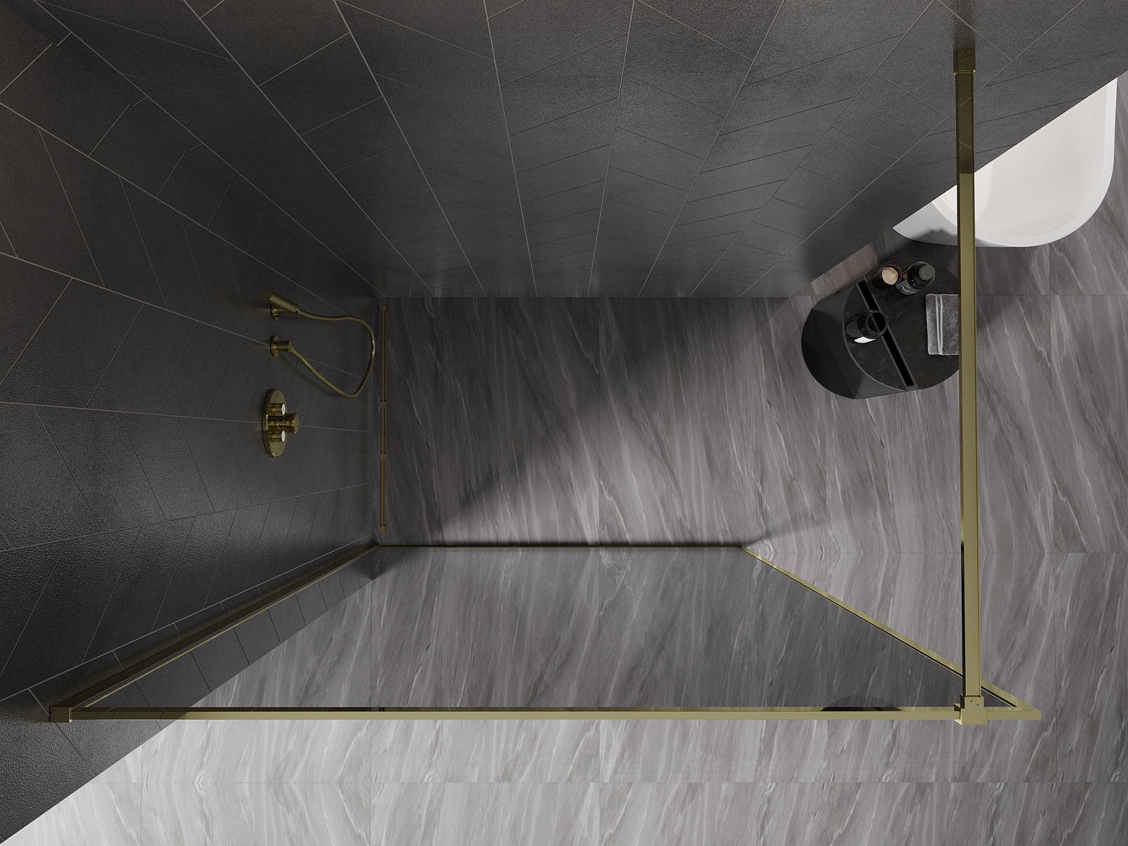 Mexen Kioto-XF douchewand Walk-in met frame 110 x 202 cm, grafiet 10 mm, goud - 800-110-104-50-40-X