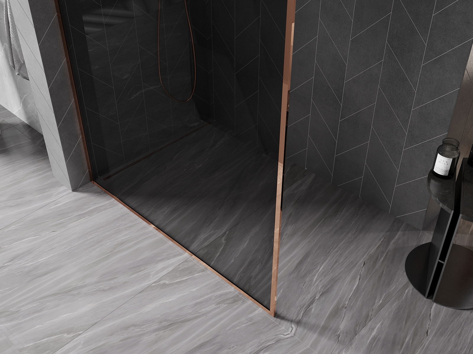 Mexen Kioto-XF douchewand Walk-in met frame 50 x 202 cm, grafiet 10 mm, roze goud - 800-050-104-60-40-X