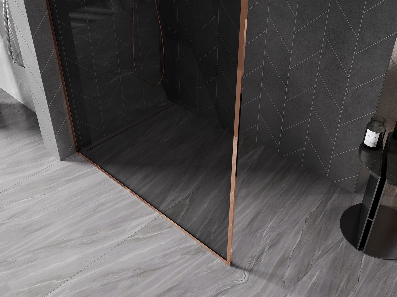 Mexen Kioto-XF douchewand Walk-in met frame 90 x 202 cm, grafiet 10 mm, roze goud - 800-090-104-60-40-X