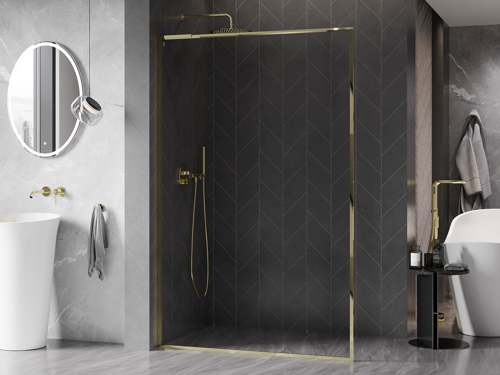 Mexen Kioto-F L Douchewand Walk-in met frame 105 x 202 cm, transparant 8 mm, goud - 800-105-174-50-00