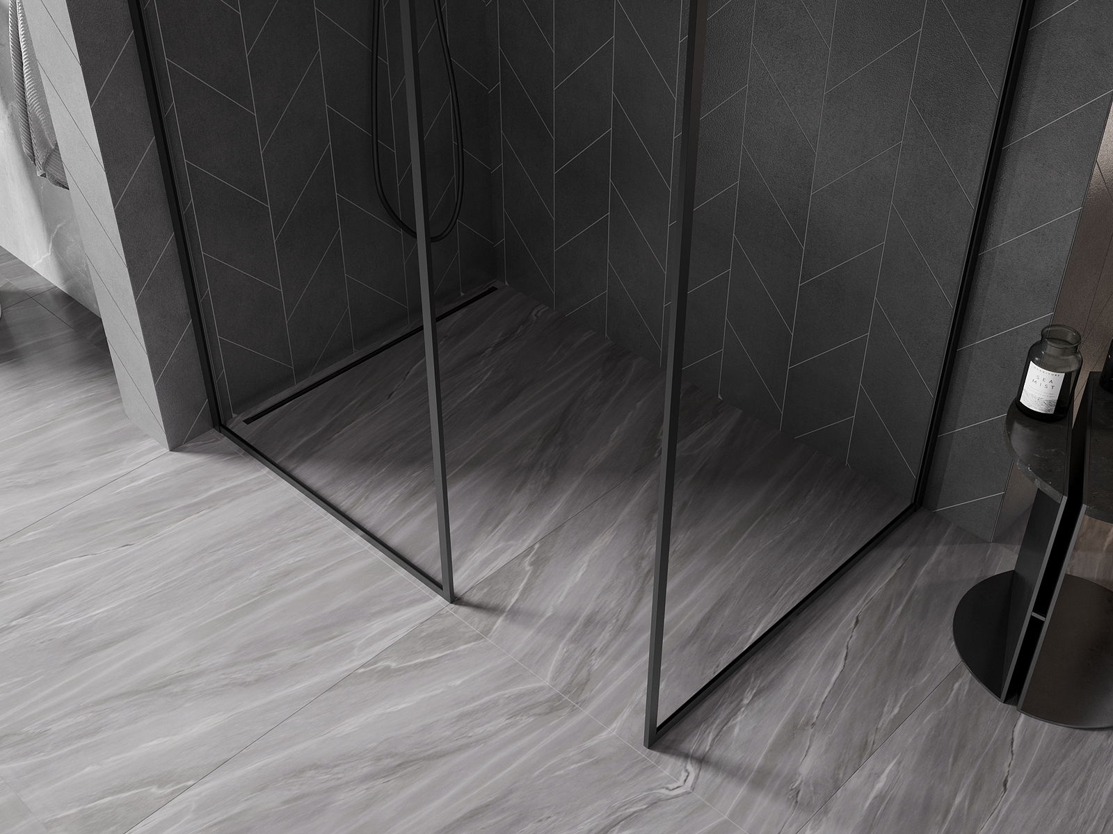 Mexen Kioto-XF douchewand Walk-in met frame 140 x 110 cm, transparant 10 mm, zwart - 800-140-202-04-70-110-XF