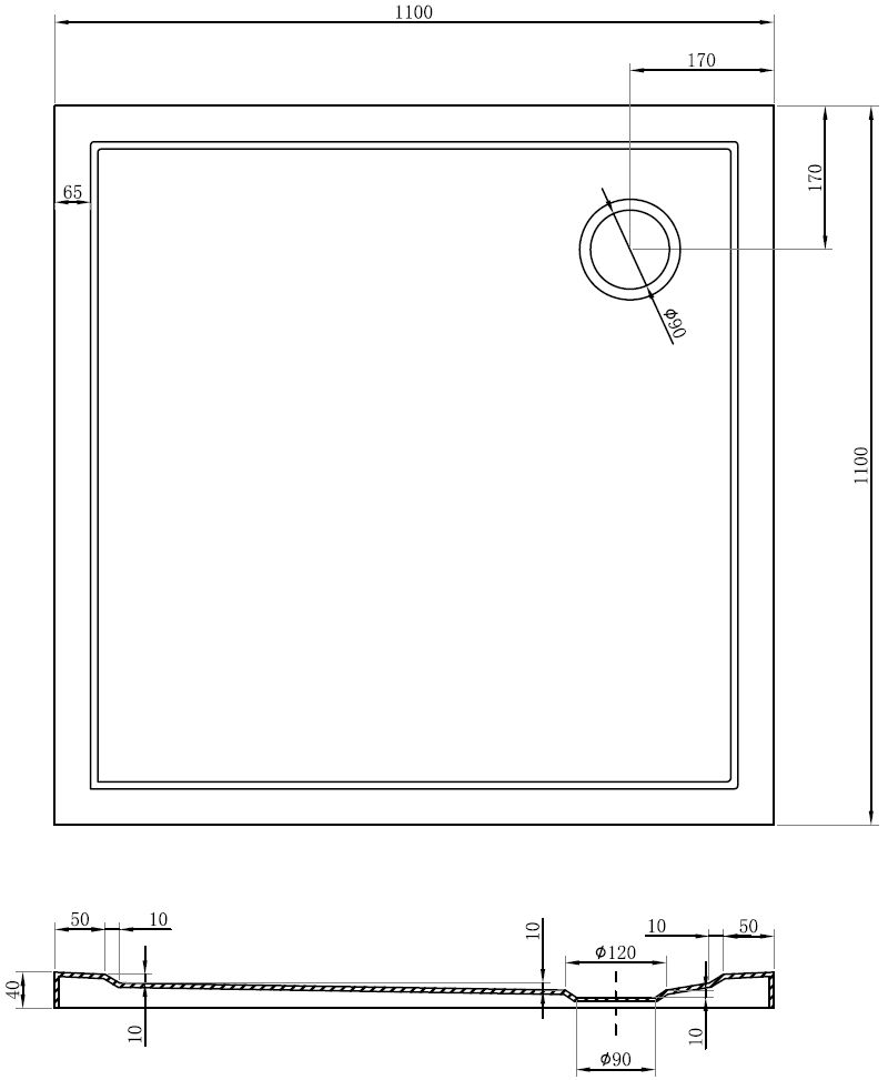 De douchebak is zo ontworpen dat het water vrij kan weglopen in de richting van de afvoer. Het zorgt voor een snelle en efficiënte afvoer van water van het oppervlak van de douchebak, waardoor het ontstaan van plassen en het overstromen van de badkamer wordt voorkomen.