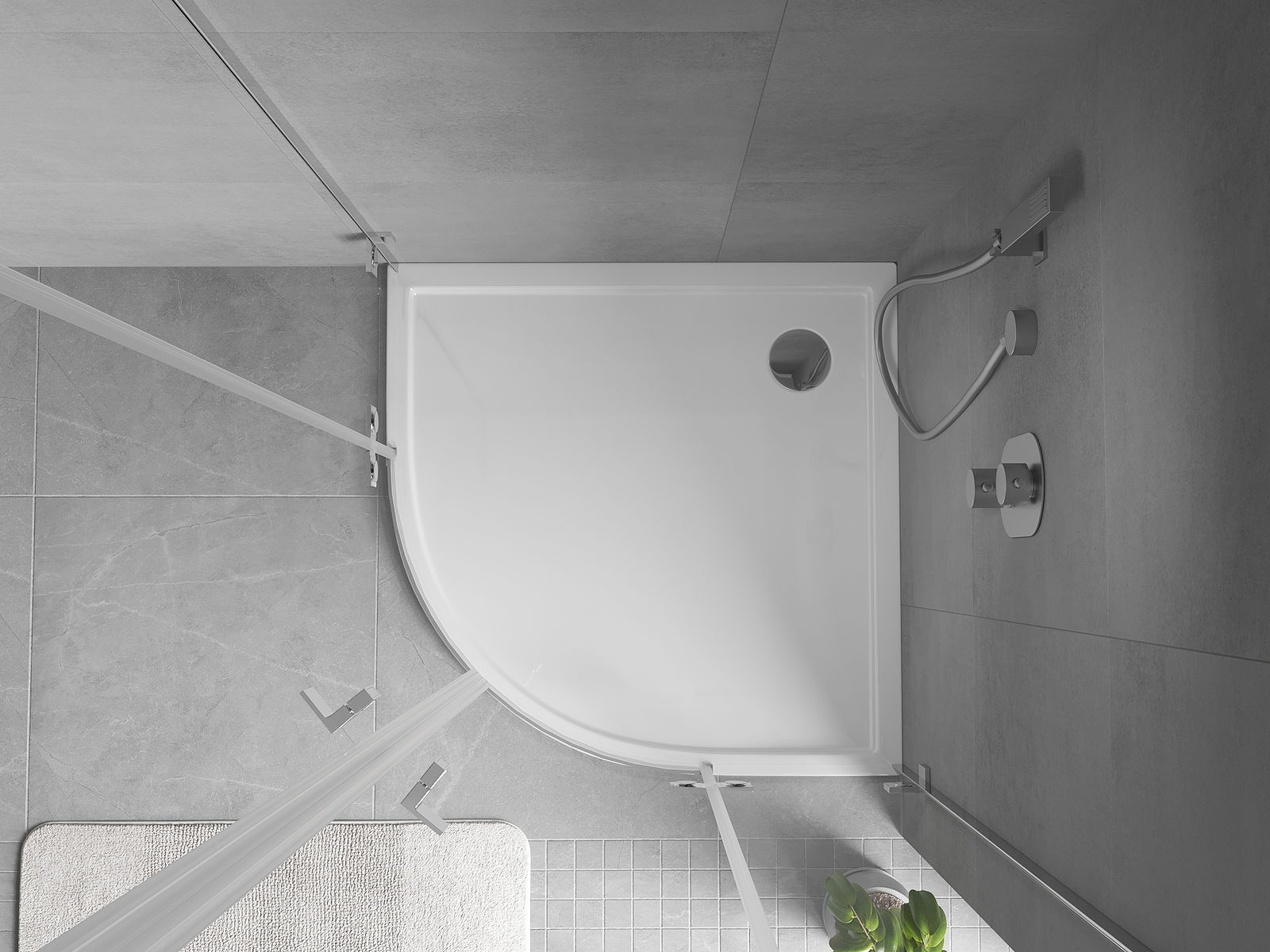 De douchebak is zo ontworpen dat het water vrij naar de afvoer kan stromen. Dit zorgt voor een snelle en efficiënte afvoer van het oppervlak van de douchebak, waardoor plassen en overstromingen in de badkamer worden voorkomen.