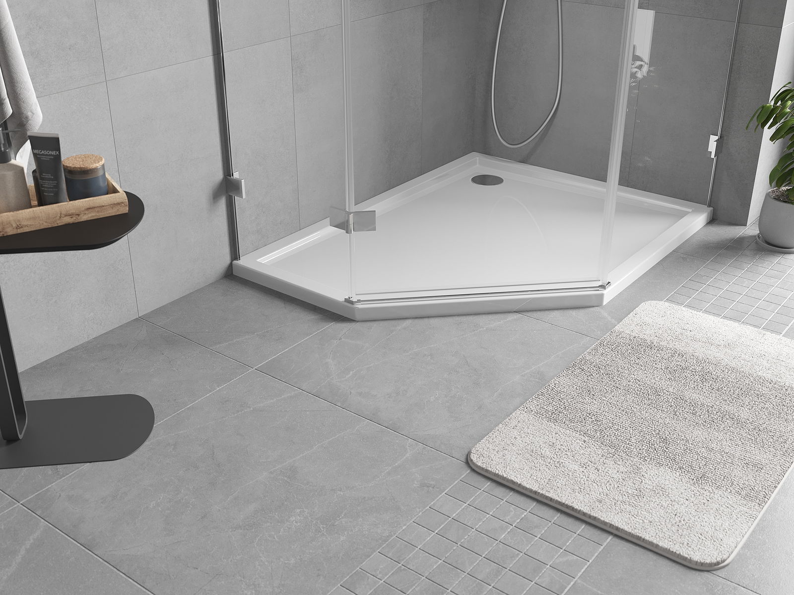De douchebak is zo ontworpen dat het water vrij naar de afvoer kan stromen. Dit zorgt voor een snelle en efficiënte afvoer van het oppervlak van de douchebak, waardoor plassen en overstromingen in de badkamer worden voorkomen.