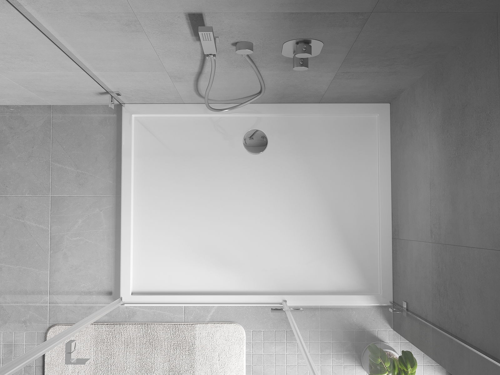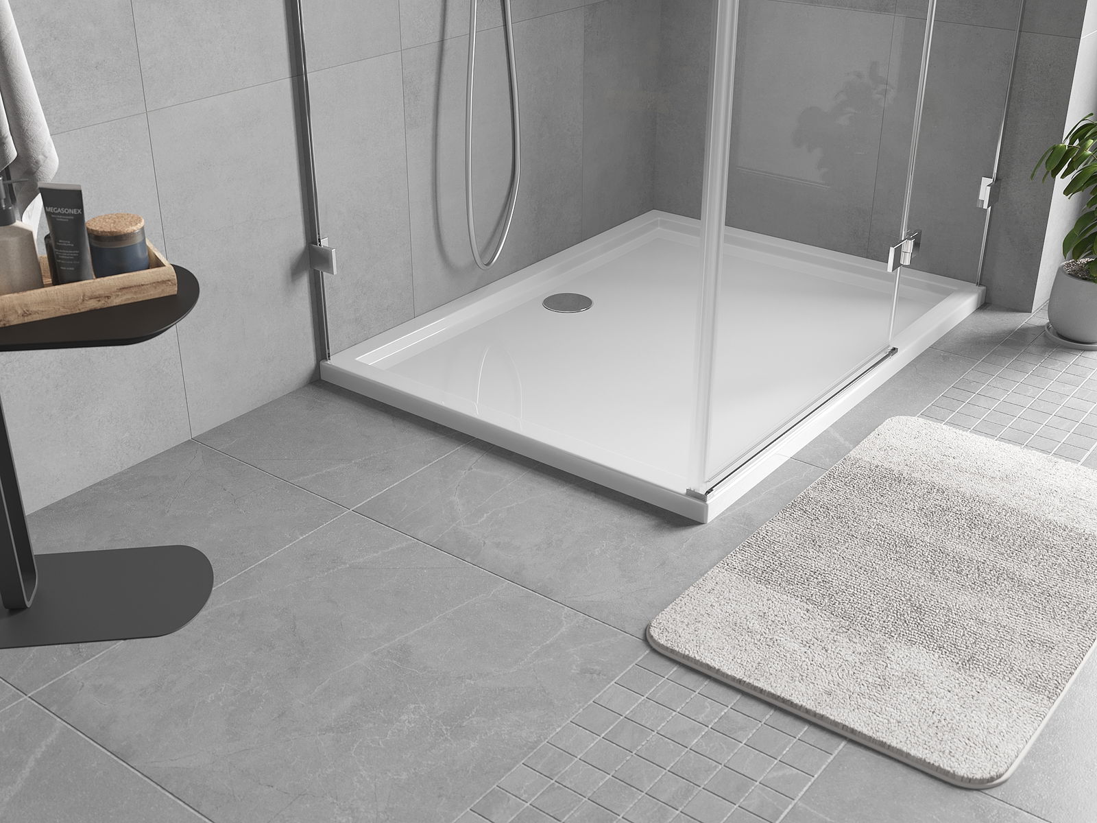De douchebak is zo ontworpen dat het water vrij kan weglopen in de richting van de afvoer. Het zorgt voor een snelle en efficiënte afvoer van water van het oppervlak van de douchebak, waardoor het ontstaan van plassen en het overstromen van de badkamer wordt voorkomen.