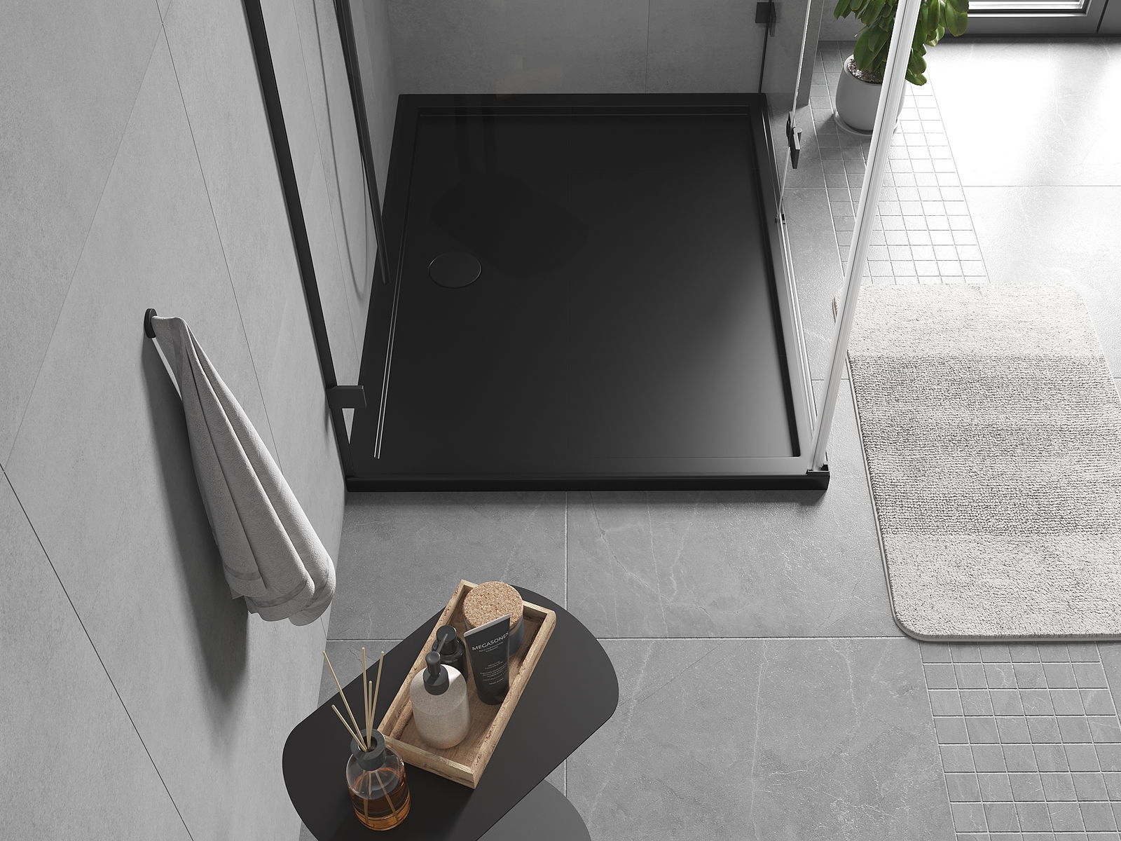 De douchebak is zo ontworpen dat het water vrij kan weglopen in de richting van de afvoer. Het zorgt voor een snelle en efficiënte afvoer van water van het oppervlak van de douchebak, waardoor het ontstaan van plassen en het overstromen van de badkamer wordt voorkomen.
