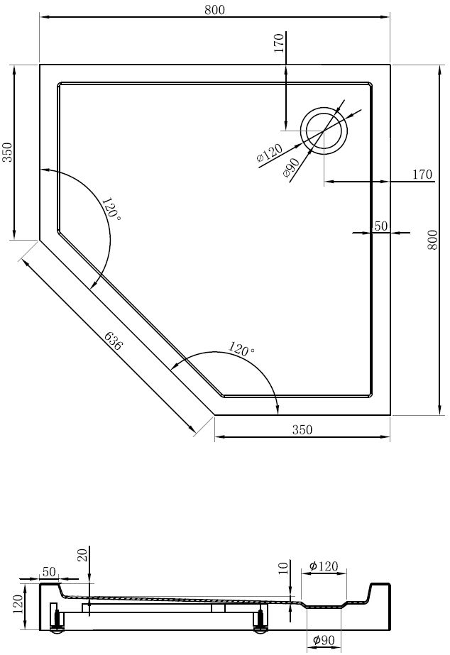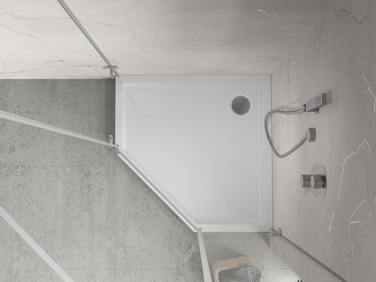 De douchebak is zo ontworpen dat het water vrij kan weglopen in de richting van de afvoer. Het zorgt voor een snelle en efficiënte afvoer van water van het oppervlak van de douchebak, waardoor het ontstaan van plassen en het overstromen van de badkamer wordt voorkomen.