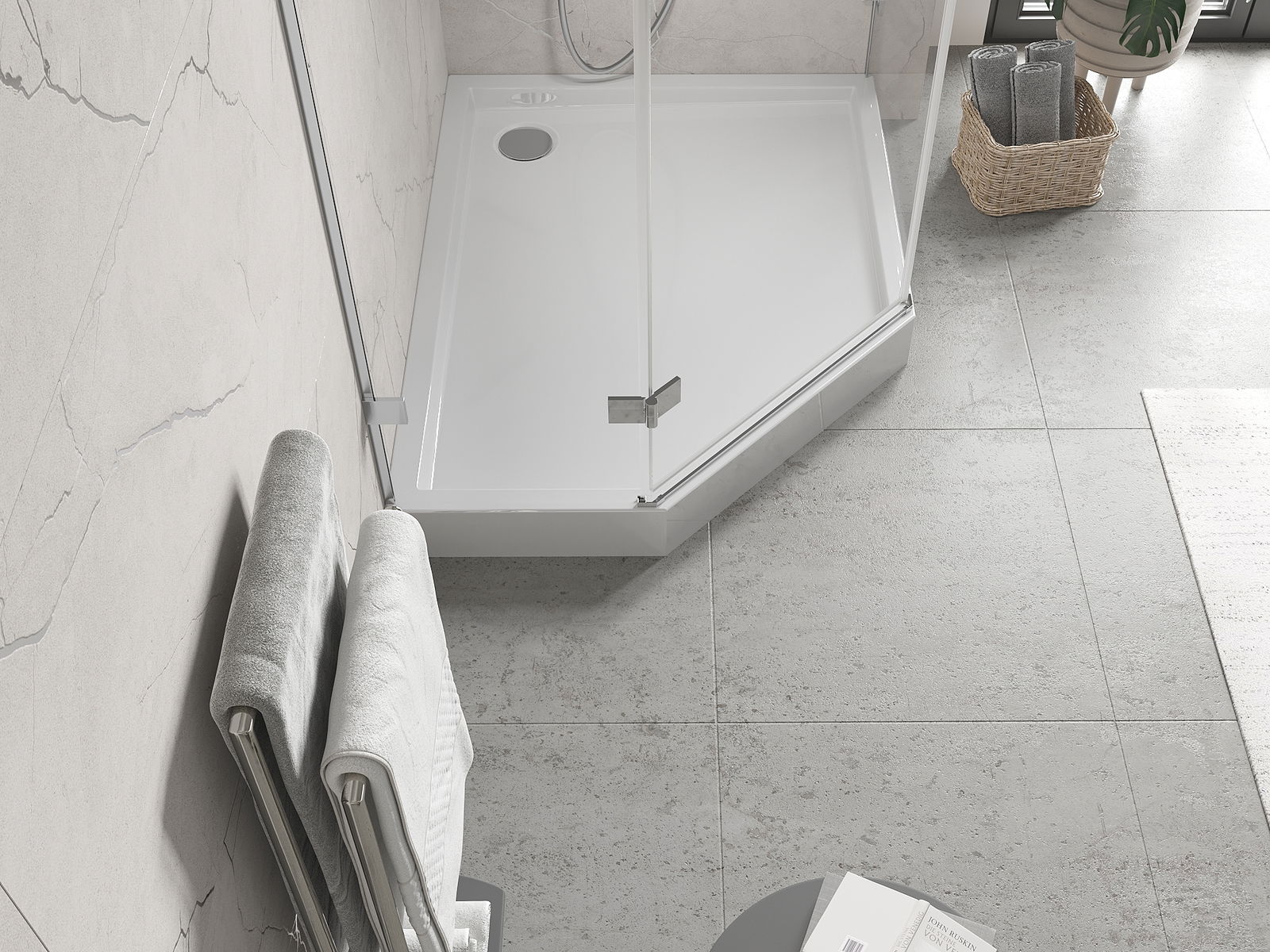De douchebak is zo ontworpen dat het water vrij naar de afvoer kan stromen. Dit zorgt voor een snelle en efficiënte afvoer van het oppervlak van de douchebak, waardoor plassen en overstromingen in de badkamer worden voorkomen.