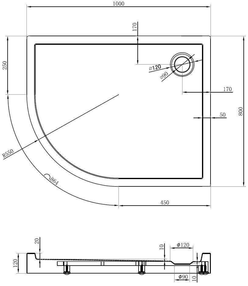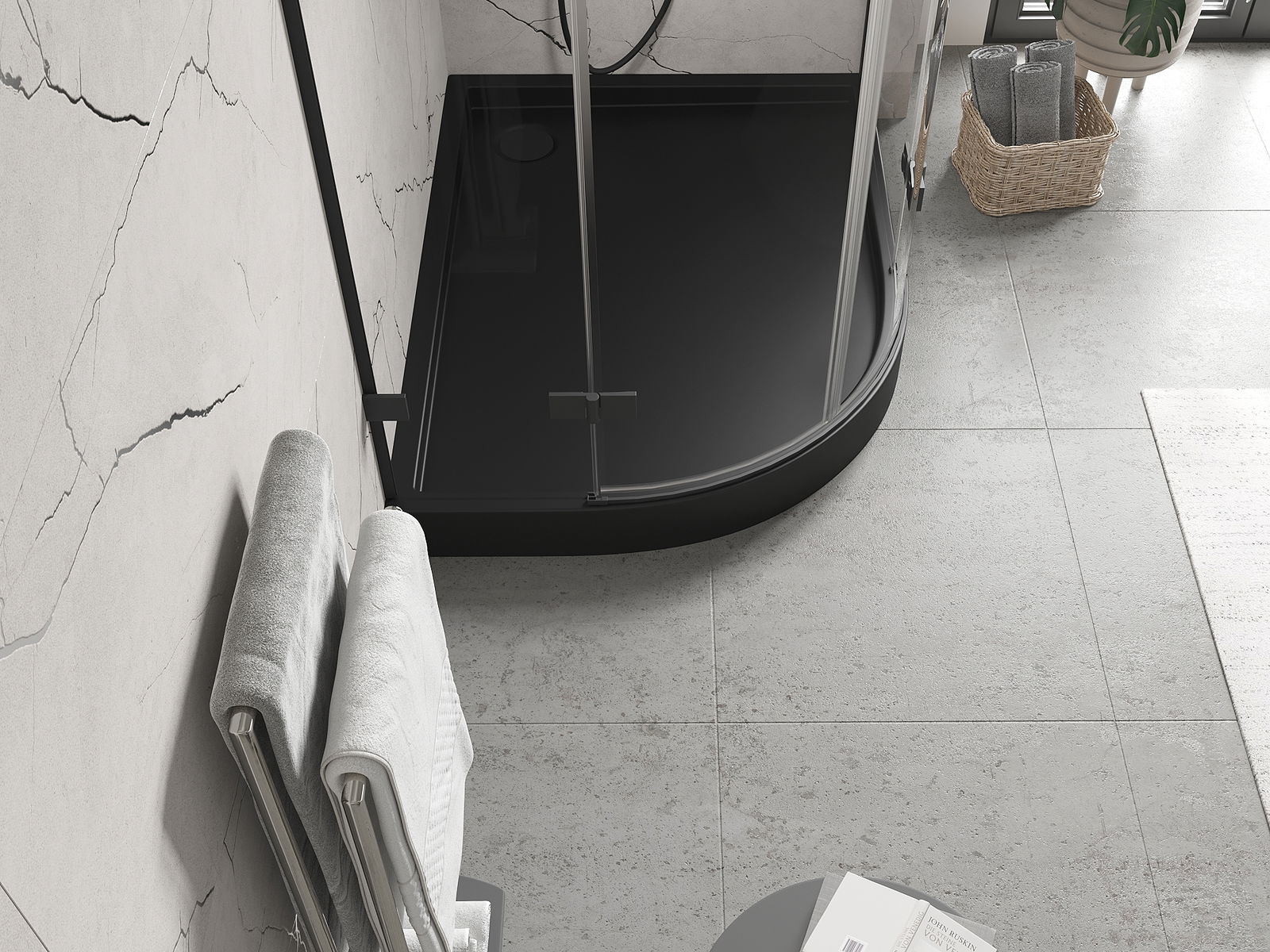 De douchebak is zo ontworpen dat het water vrij kan weglopen in de richting van de afvoer. Het zorgt voor een snelle en efficiënte afvoer van water van het oppervlak van de douchebak, waardoor het ontstaan van plassen en het overstromen van de badkamer wordt voorkomen.