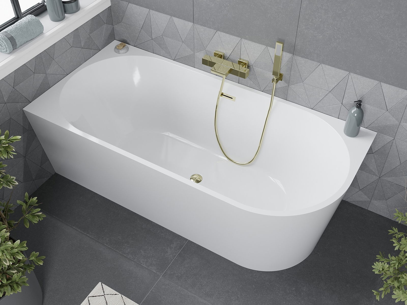 Mexen Mia vrijstaande hoekbad links 160 x 80 cm, wit, gouden overloop - 52691608000L-50