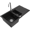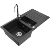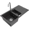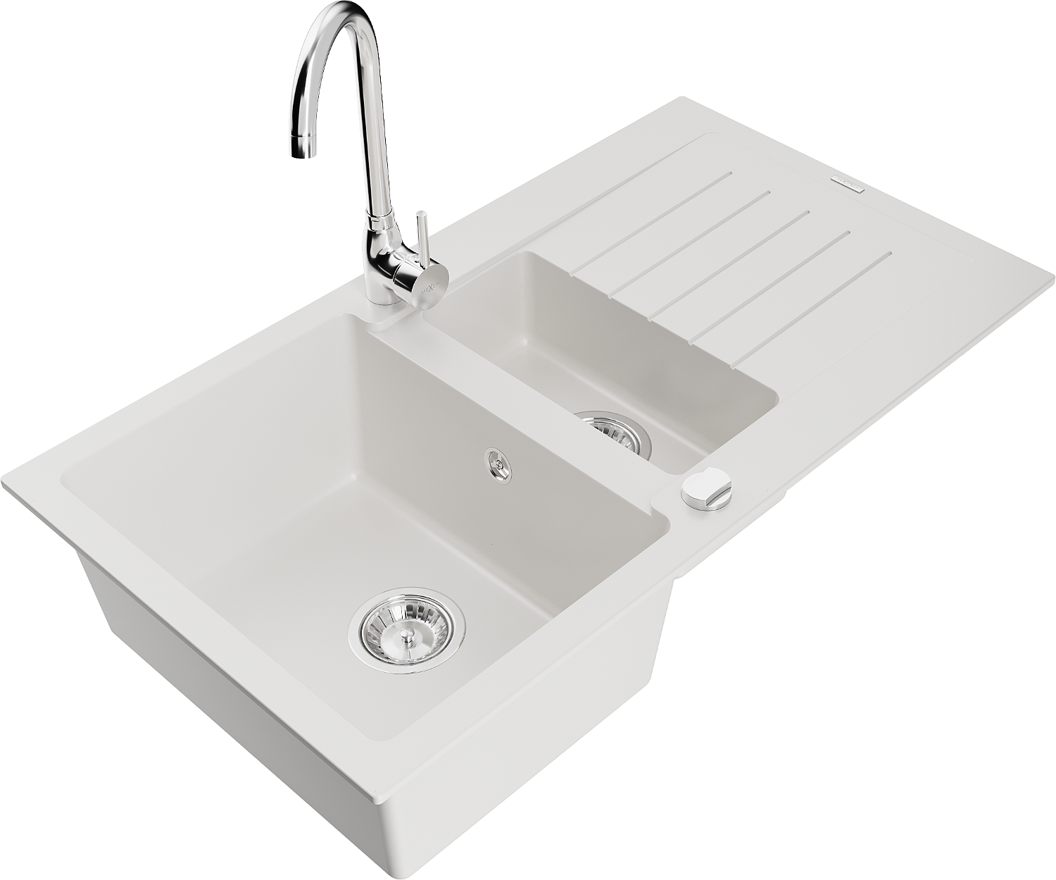 Mexen Matias granieten spoelbak 1,5-combi met afdruipplaat en Telma keukenkraan, wit - 6502-20-670200-00