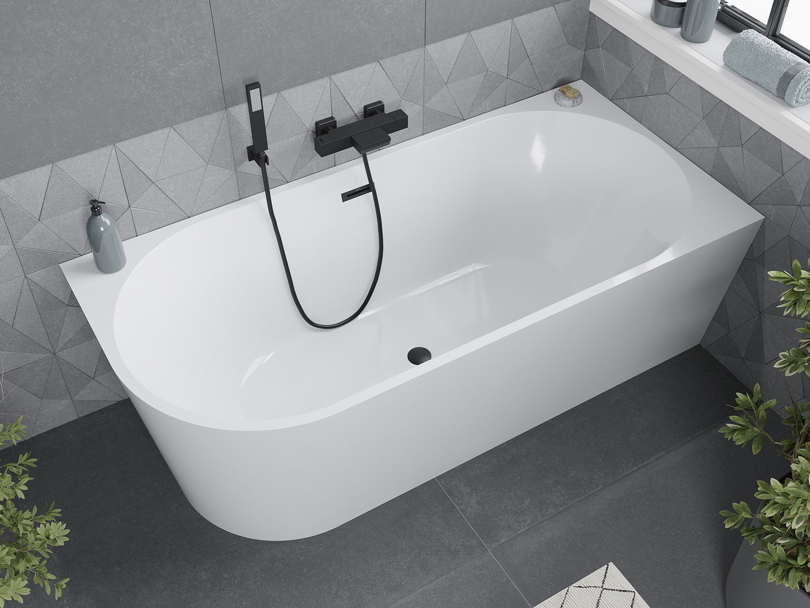 Mexen Mia vrijstaande hoekbadkuip rechts 160 x 80 cm, wit, zwarte overloop - 52691608000P-70