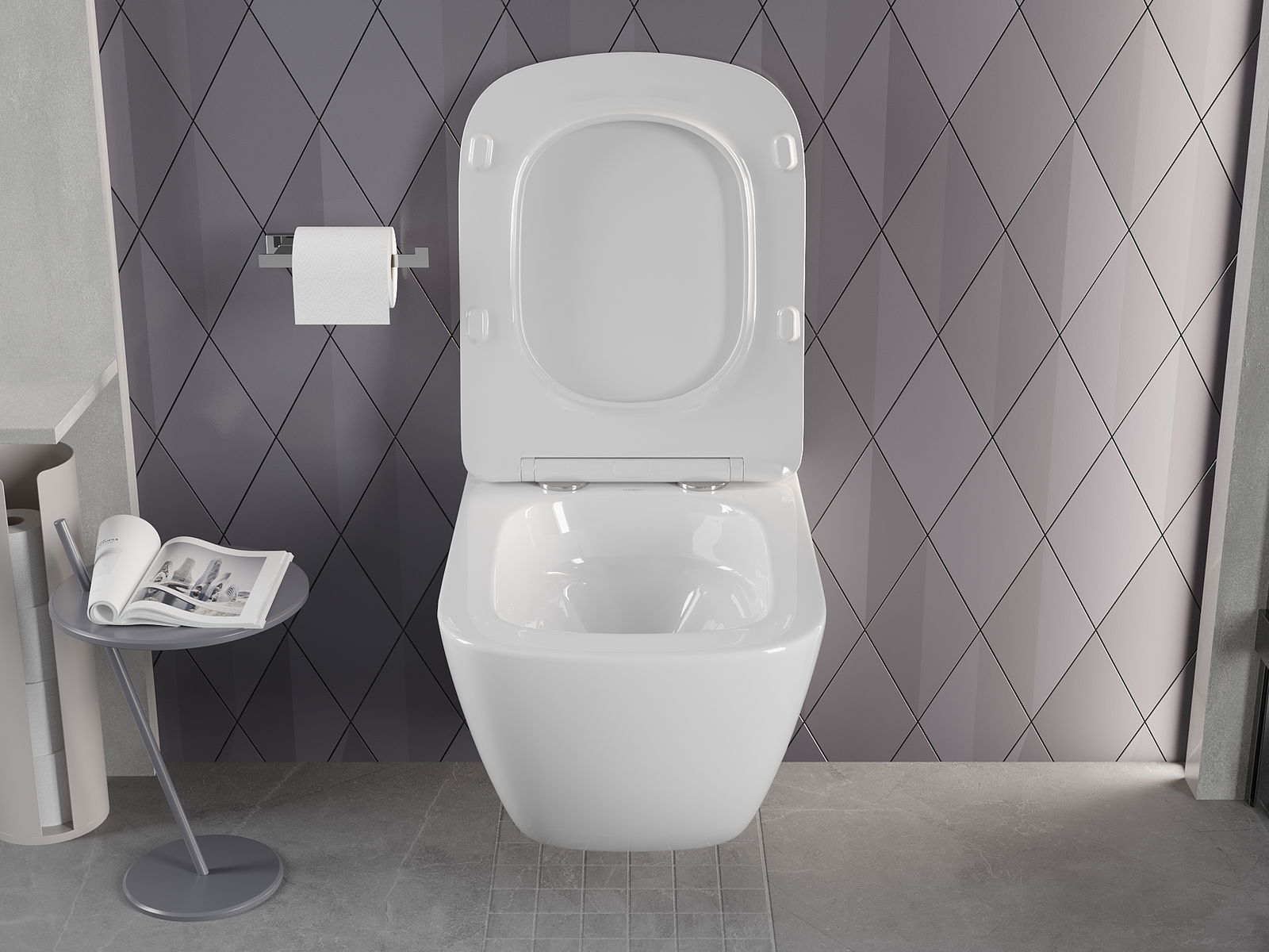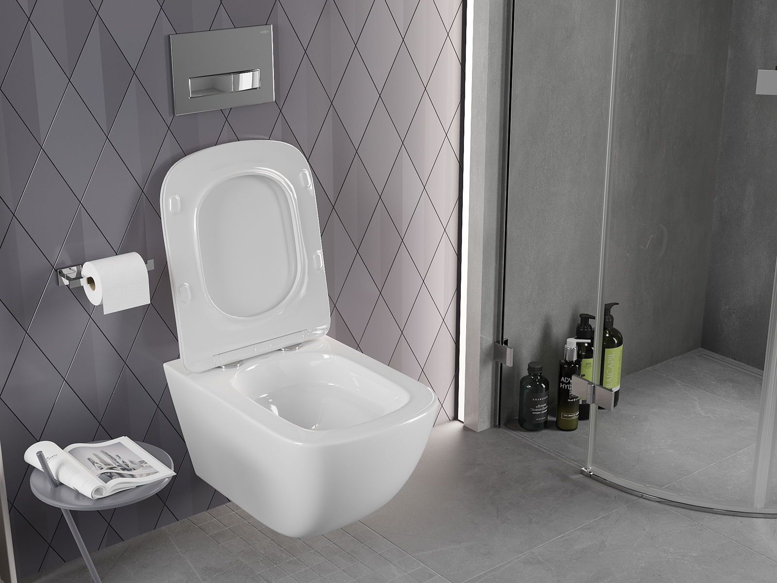 De zelfsluitende toiletbril is uitgerust met een speciaal systeem dat het snelle en plotselinge vallen ervan remt. Het systeem elimineert effectief het probleem van klapperen met de bril en minimaliseert geluid, waardoor een soepele en stille sluiting van het toilet wordt gegarandeerd.
