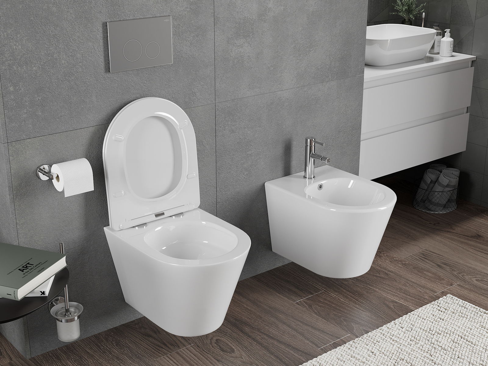 De zelfsluitende toiletbril is uitgerust met een speciaal systeem dat het snelle en plotselinge vallen ervan remt. Het systeem elimineert effectief het probleem van klapperen met de bril en minimaliseert geluid, waardoor een soepele en stille sluiting van het toilet wordt gegarandeerd.