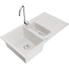 Het oppervlak van de gootsteen is bestand tegen vlekken en verkleuringen, waardoor het gemakkelijk schoon te houden is en zijn kleur behoudt gedurende een lange gebruiksperiode. Een esthetische en praktische aanvulling op elke keuken.