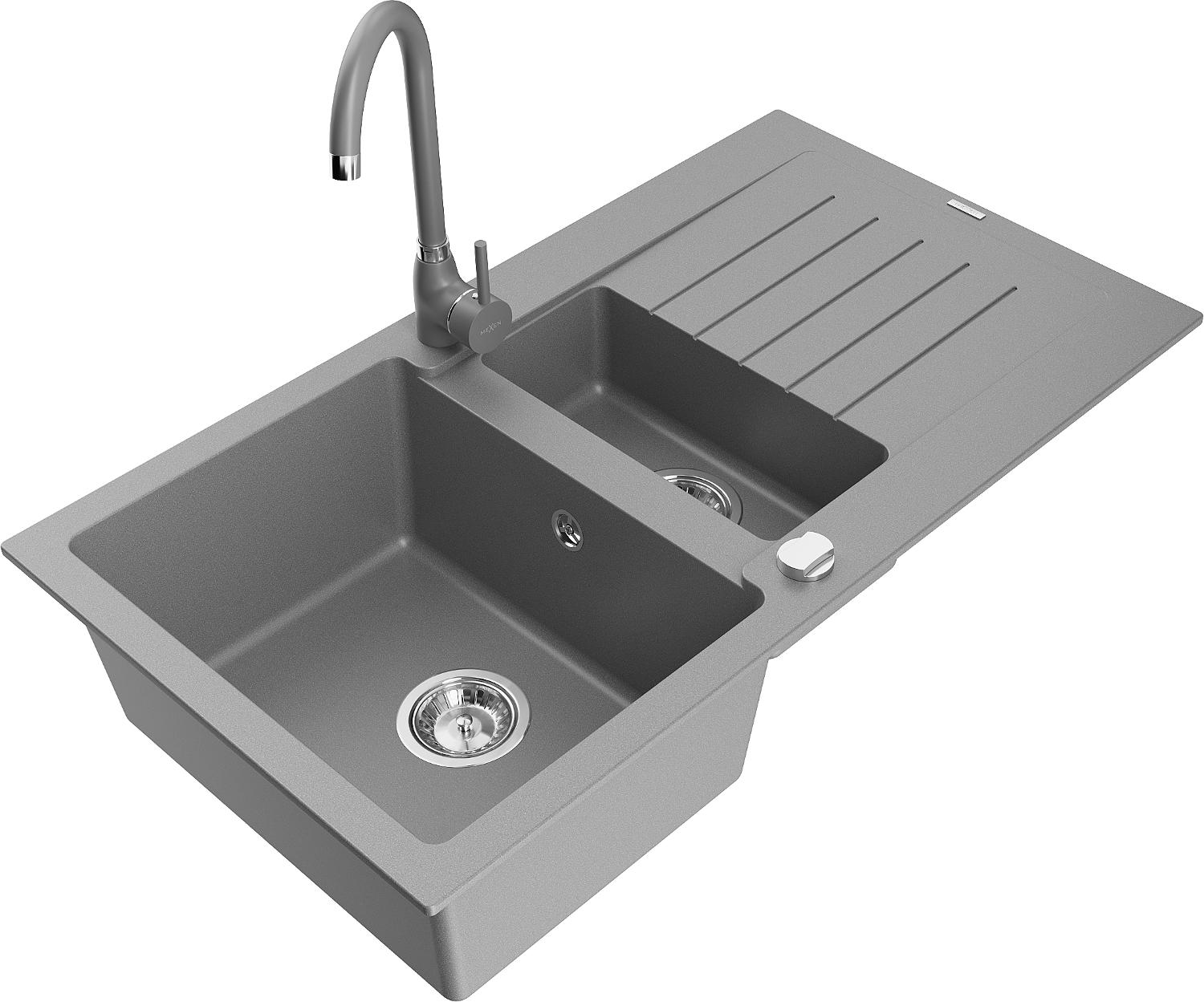Mexen Matias granieten gootsteen 1,5-komor met afdruiprek en keukenkraan Telma, grijs - 6502-71-670200-71