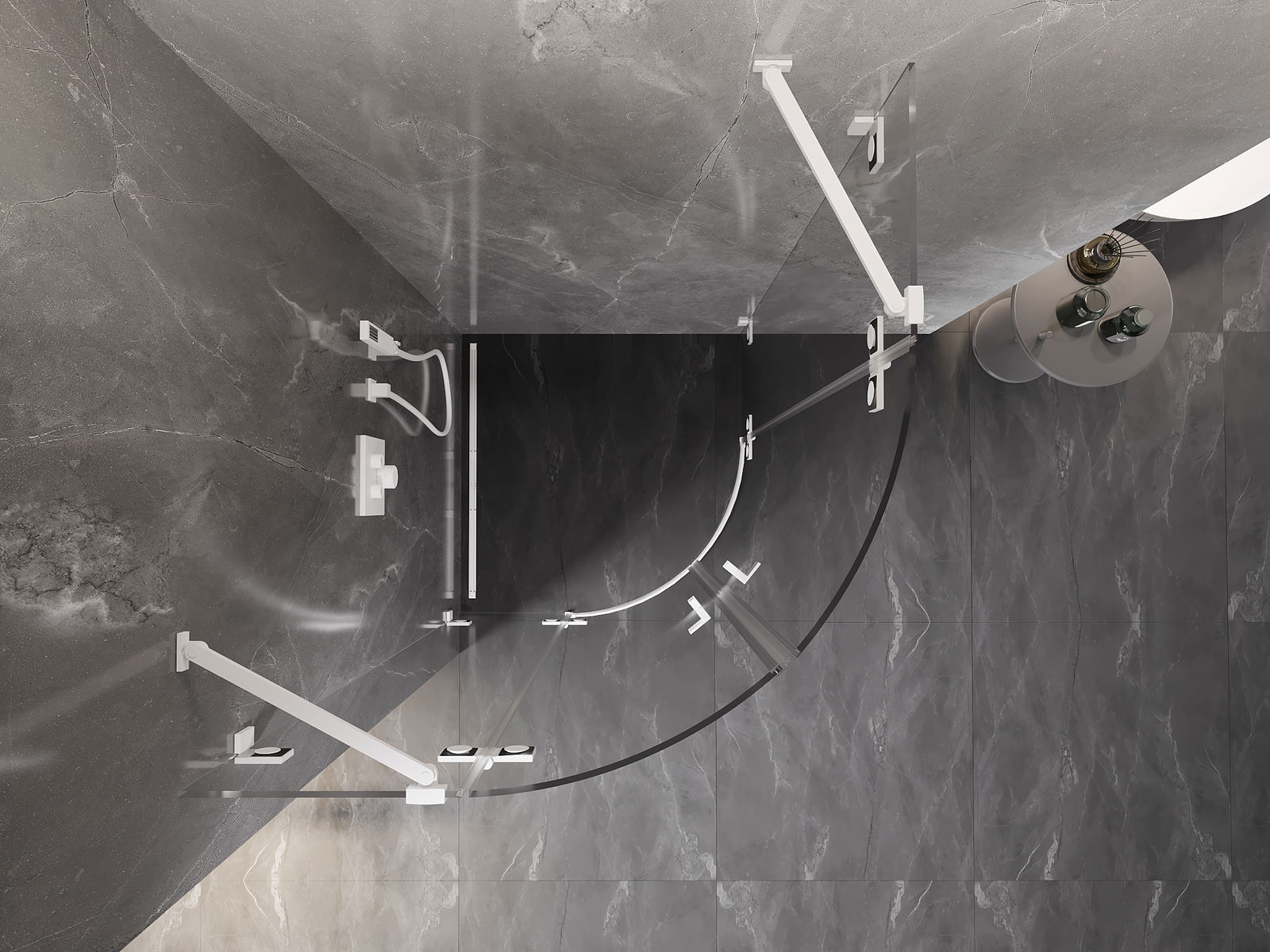 Handige en comfortabele greep is gemaakt van duurzaam en weerbestendig metaal. De modieuze vorm in combinatie met een afwerking die past bij de kleur van de profielen geeft het geheel een moderne en stijlvolle uitstraling, wat de esthetiek van elke badkamer benadrukt.