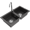 Mexen Mario granieten dubbele spoelbak met Telma keukenkraan, zwart/zilver - 6504-73-670200-00