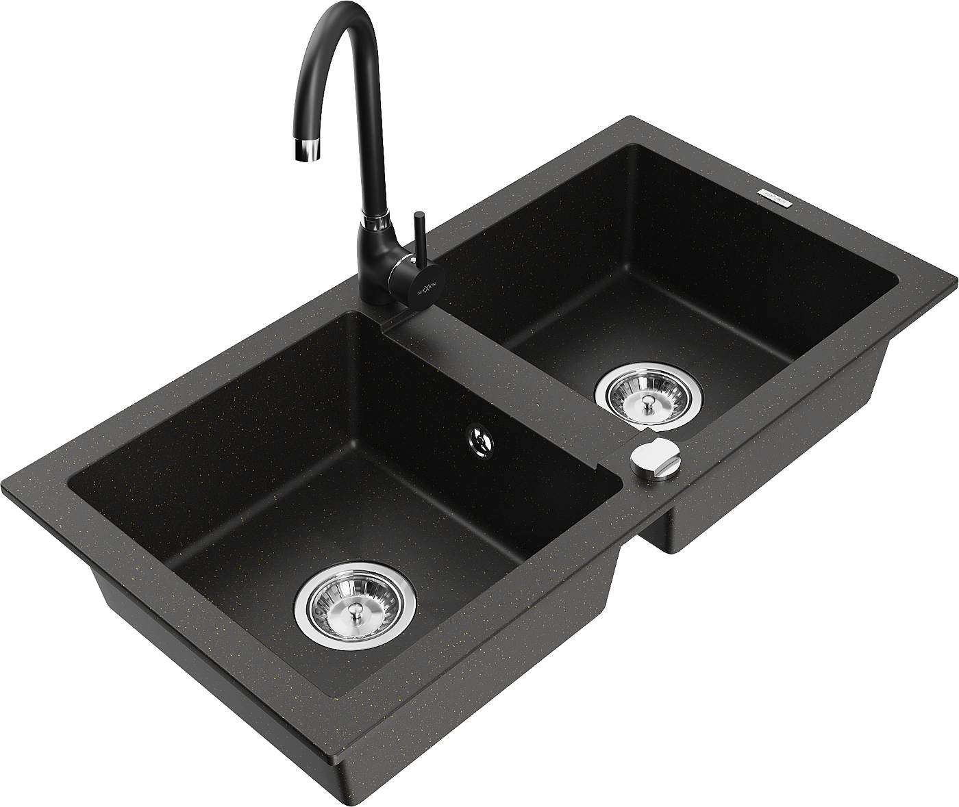Mexen Mario granieten gootsteen met 2 kommen en Telma keukenkraan, zwart/goud - 6504-75-670200-70