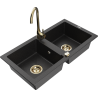 Mexen Mario granieten gootsteen 2-kamer met Telma keukenkraan, zwart - 6504-77-670200-50