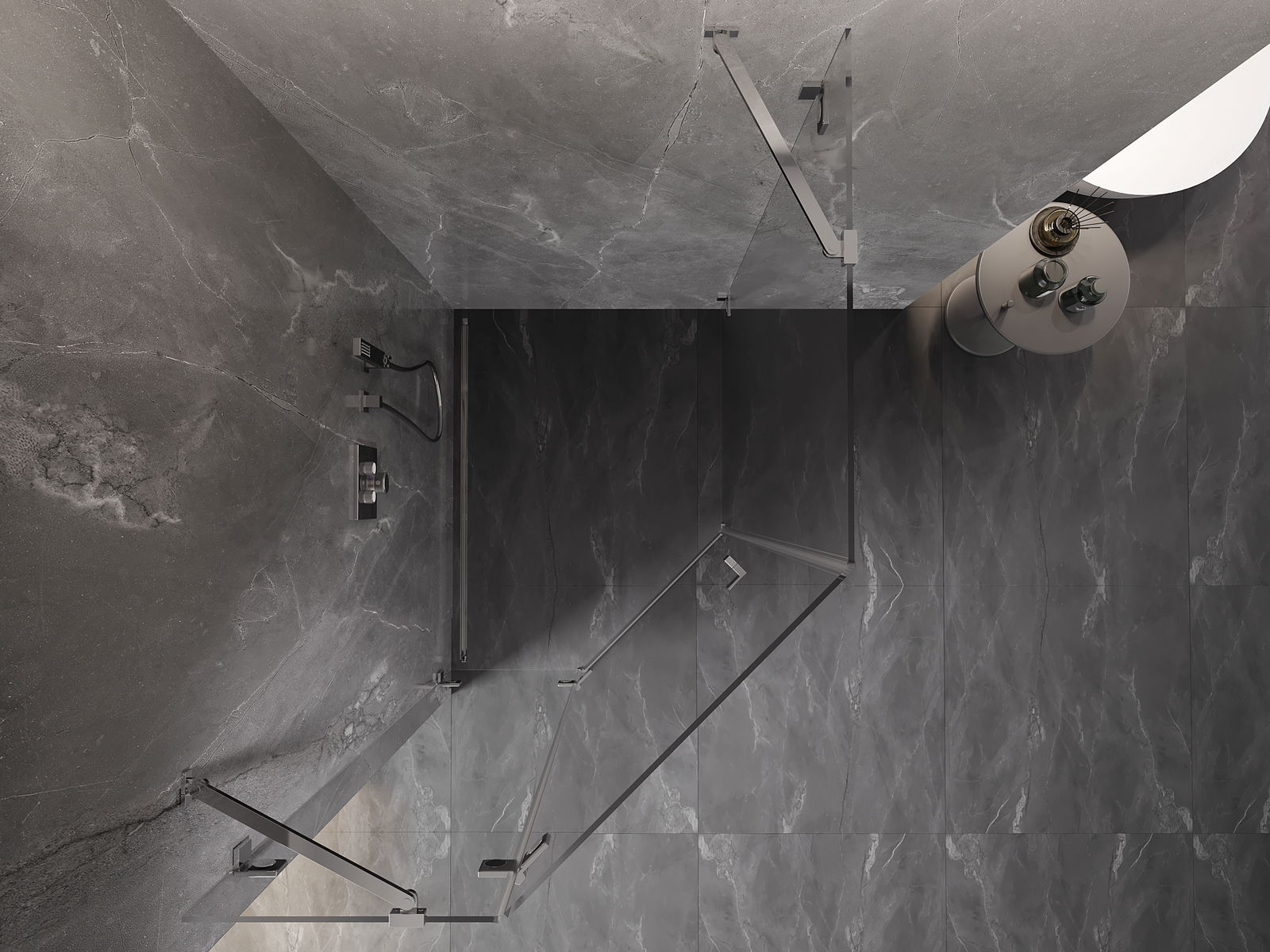 Mexen Lunar vijfhoekige douchecabine linksdraaiend 80 x 90 cm, transparant, chroom - 831-080L-090P-01-00-L