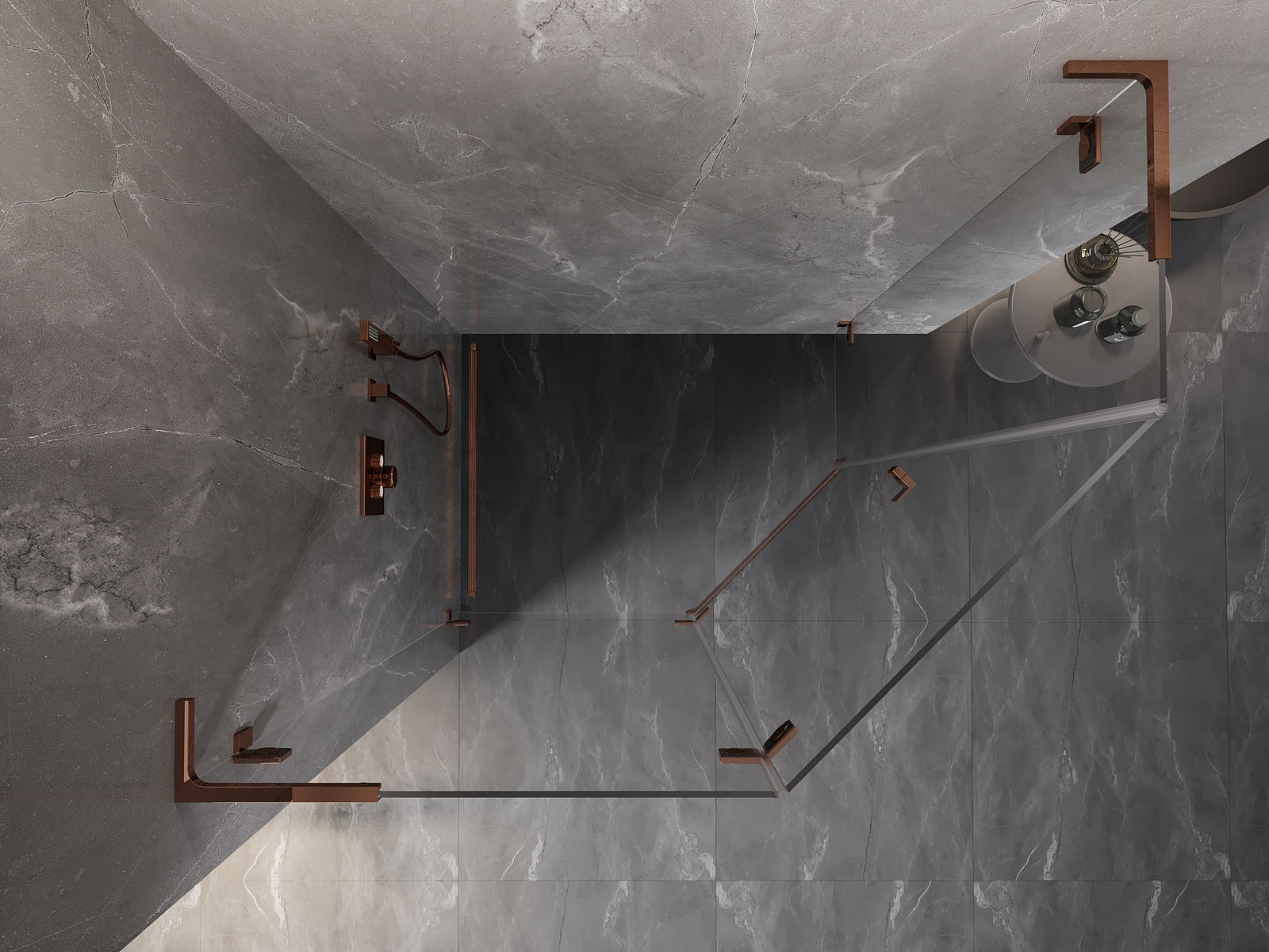 Mexen Lunar L vijfhoekige douchecabine naar links openend 90 x 80 cm, transparant, roze goud - 831L-090L-080P-60-00-L