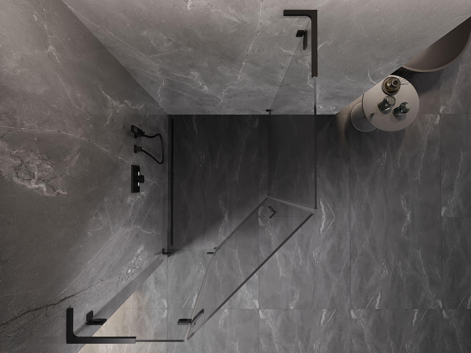 Mexen Lunar L vijfhoekige douchecabine scharnierend links 90 x 100 cm, transparant, zwart - 831L-090L-100P-70-00-L