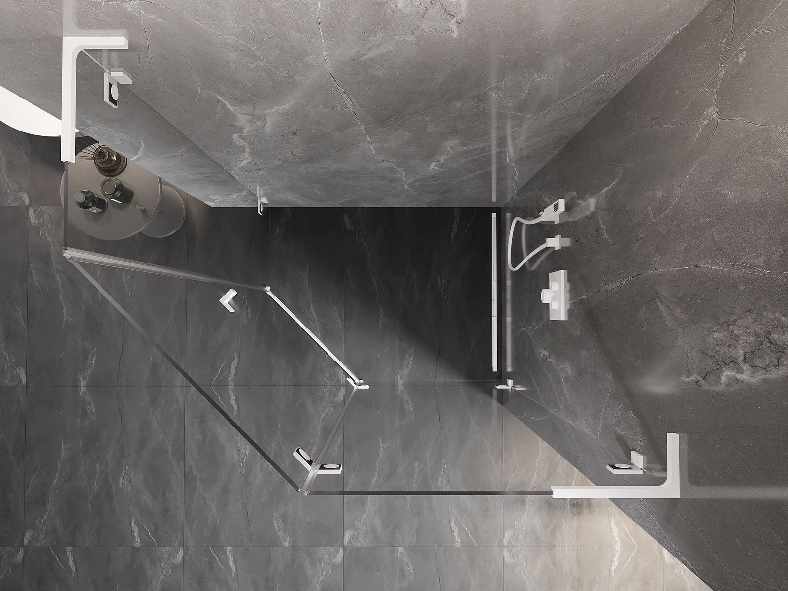 Mexen Lunar L vijfhoekige douchecabine scharnierend rechts 100 x 90 cm, transparant, wit - 831L-100P-090L-20-00-P