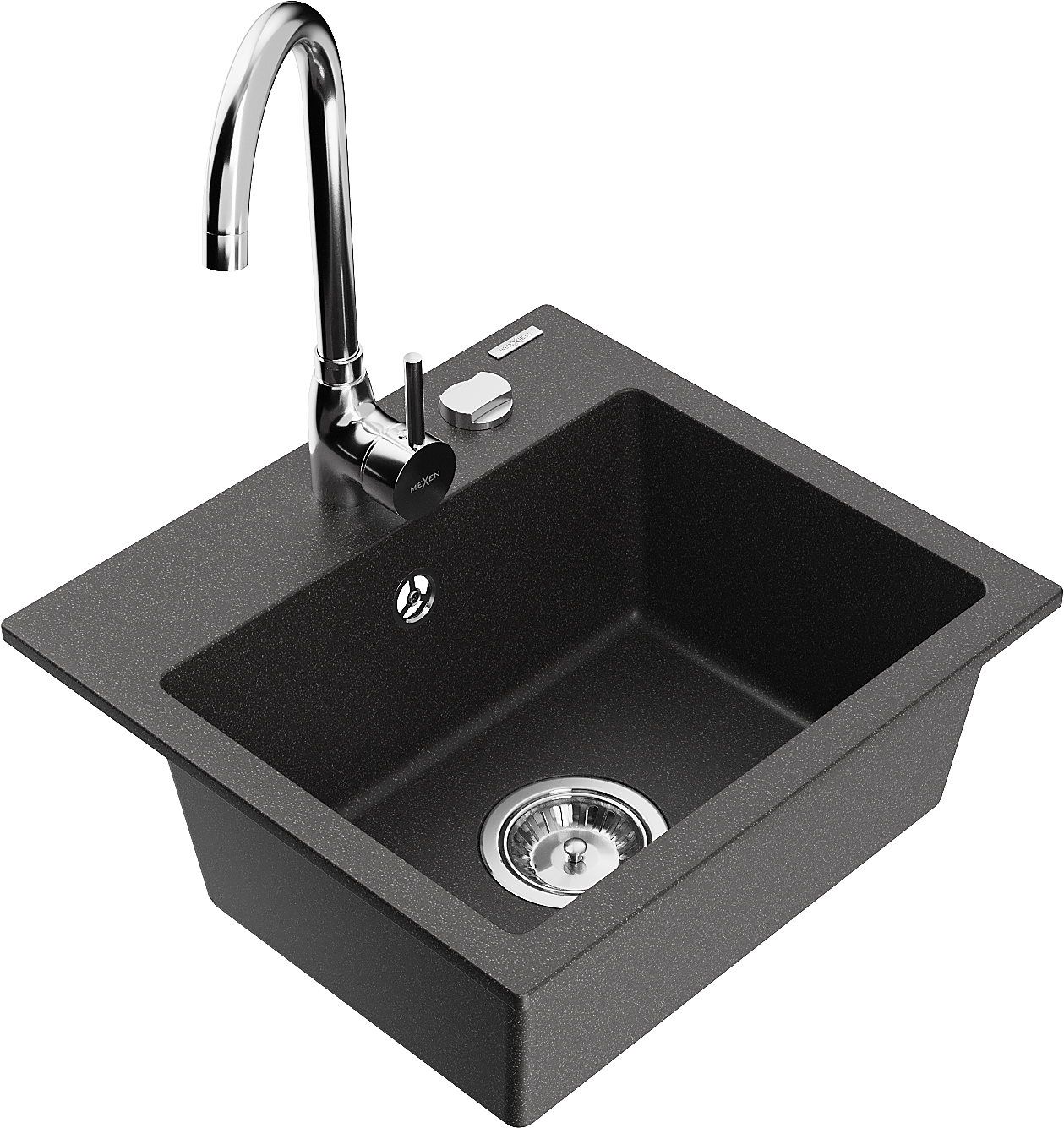 Mexen Milo granieten spoelbak 1-komerig met Telma keukenkraan, zwart gespikkeld - 6505-76-670200-00