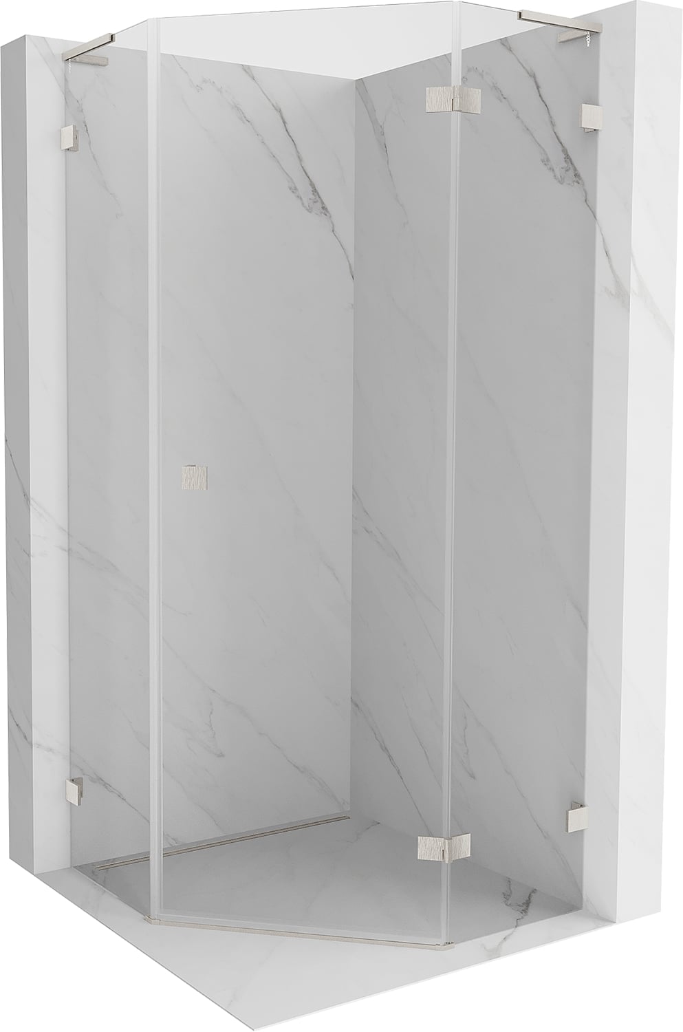 Mexen Lunar L vijfhoekige douchecabine scharnierend rechts 80 x 80 cm, transparant, geborsteld nikkel - 831L-080P-080L-97-00-P