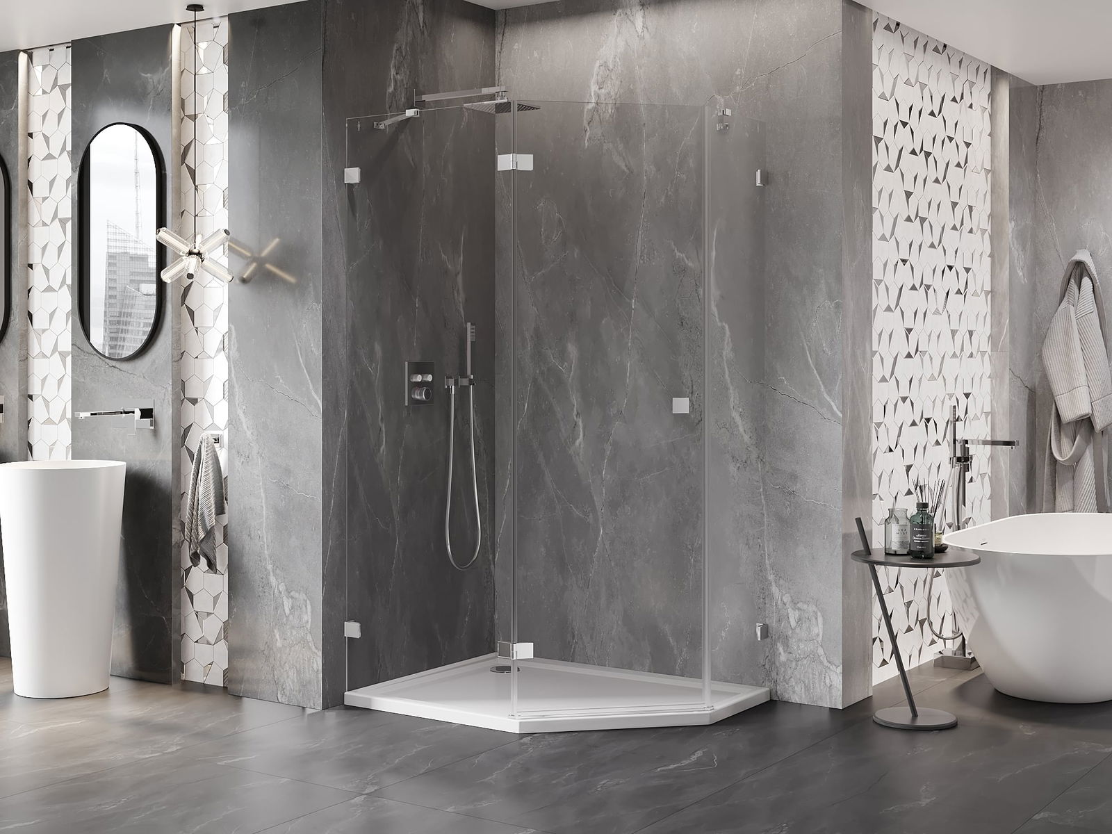 Mexen Lunar vijfhoekige douchecabine scharnierend links 100 x 90 cm, transparant, chroom - 831-100L-090P-01-00-L