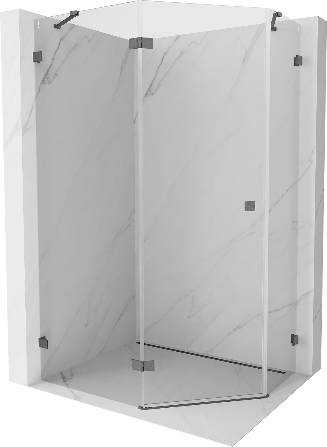 Mexen Lunar vijfhoekige douchecabine scharnierend links 90 x 80 cm, transparant, geborsteld geweergrijs - 831-090L-080P-66-00-L