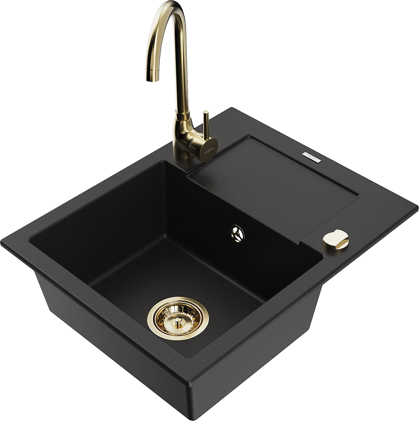 Mexen Enzo granieten spoelbak 1-komers met afdruiprek en keukenkraan Telma, zwart - 6506-77-670200-50