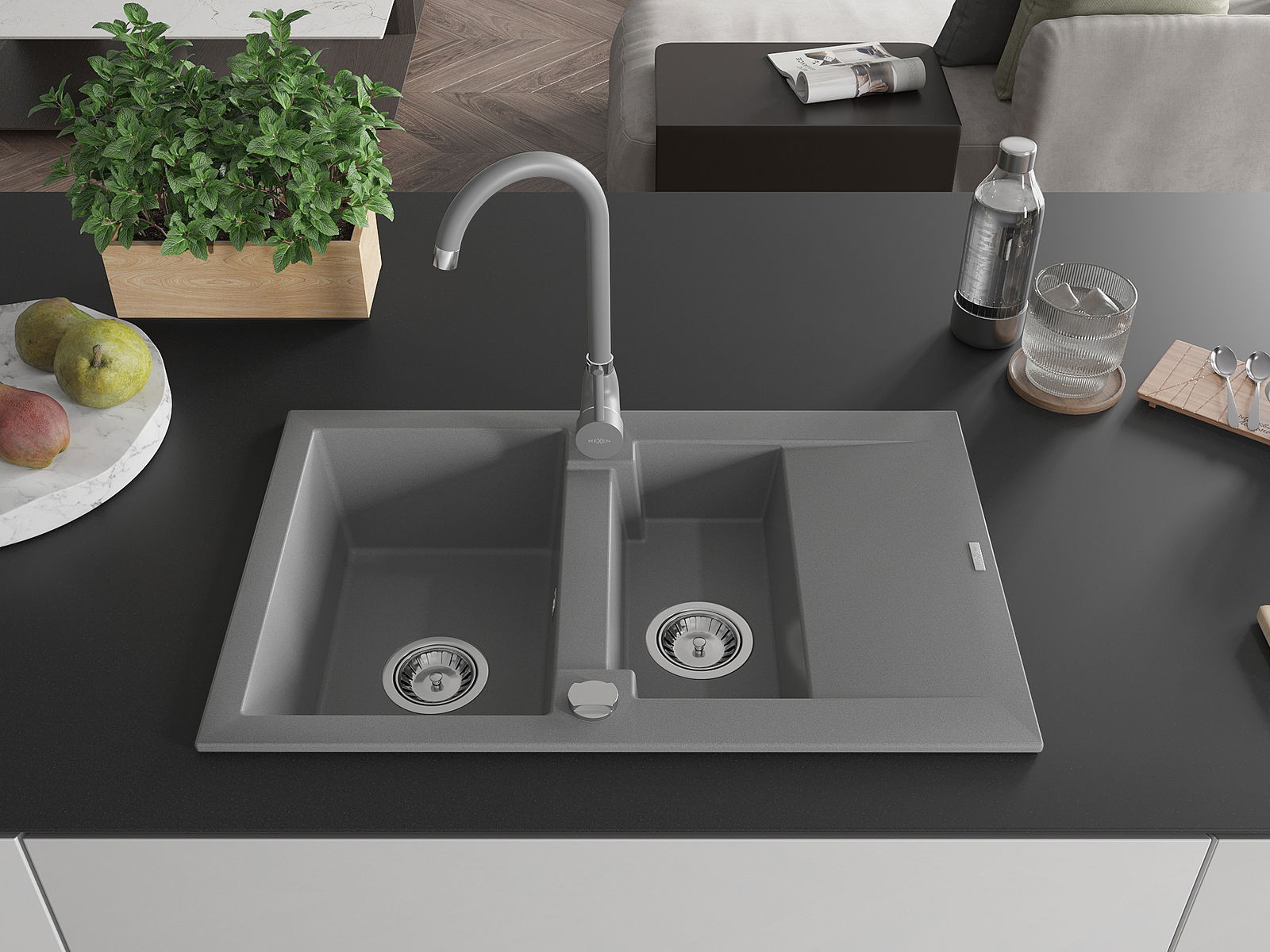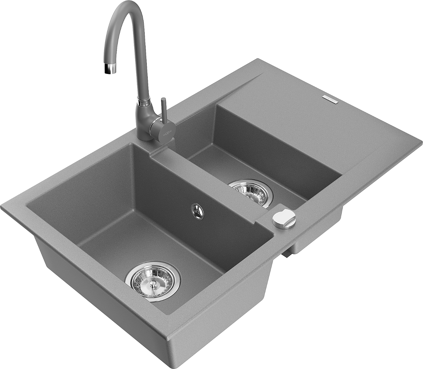 Mexen Gaspar granieten spoelbak met 1,5 kamers, afdruiprek en Telma keukenkraan, grijs - 6507-71-670200-71
