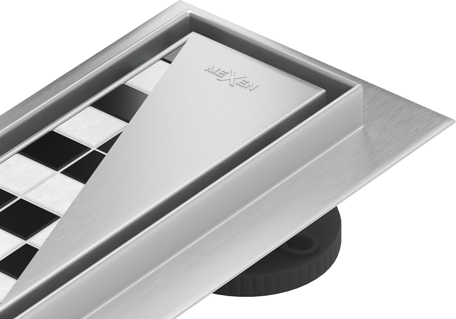 Tweedelige afdekplaat met de mogelijkheid om op elk moment te draaien, waardoor de inrichting kan worden veranderd. Aan de ene kant is er glad roestvrij staal, na omdraaien kan de afdekplaat worden ingebouwd met tegels om een verbinding met de vloer te creëren.