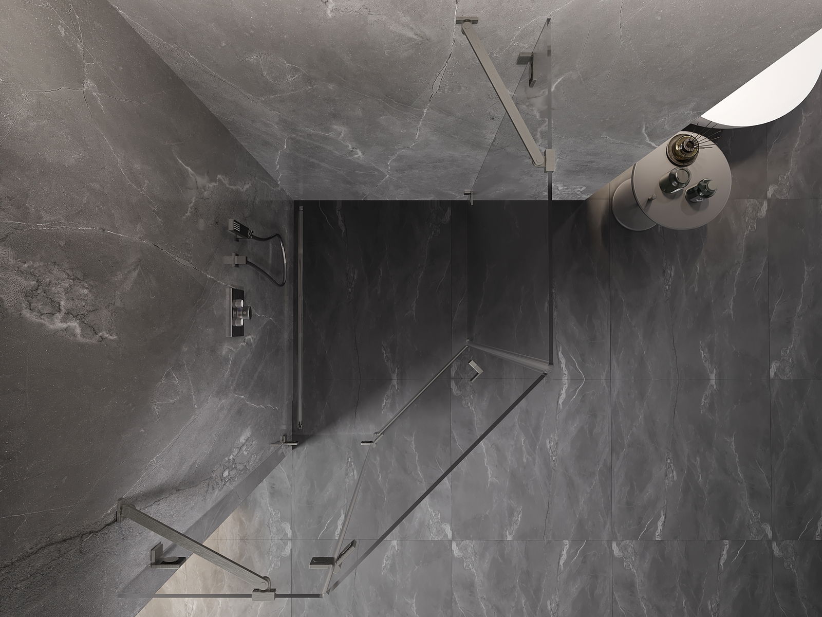 Klemmen en scharnieren zijn gemaakt van zeer duurzaam messing en vormen bovendien een effen glazen plaat. Het is een uitstekende keuze die elegantie, duurzaamheid en modern design combineert. Dankzij dergelijke oplossingen wordt de douche esthetischer en wordt het tegelijkertijd gemakkelijker om schoon te maken.