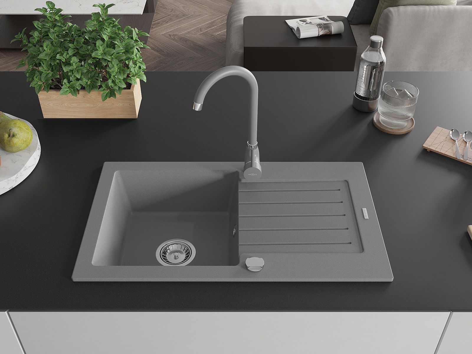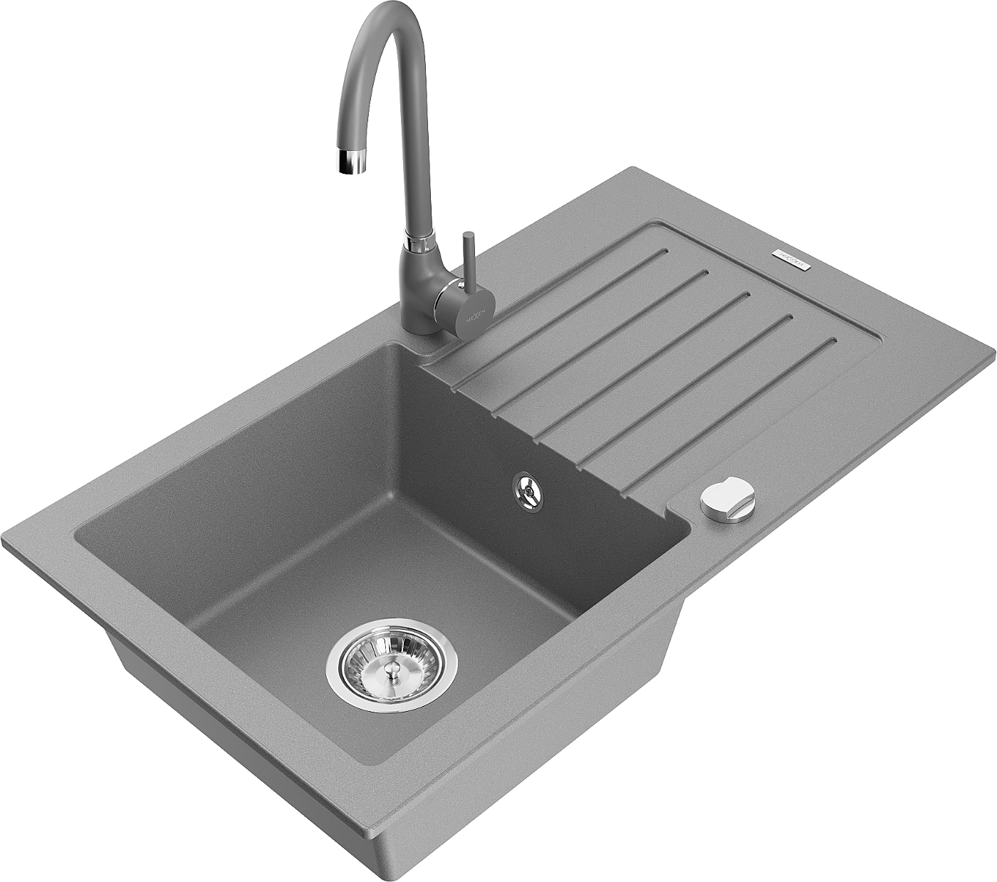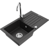 Mexen Pablo granieten spoelbak 1-comprtiment met afdruiprek en keukenmengkraan Telma, grijs - 6510-71-670200-71