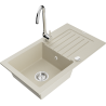Het oppervlak van de gootsteen is bestand tegen vlekken en verkleuringen, waardoor het gemakkelijk schoon te houden is en zijn kleur behoudt gedurende een lange gebruiksperiode. Een esthetische en praktische aanvulling op elke keuken.