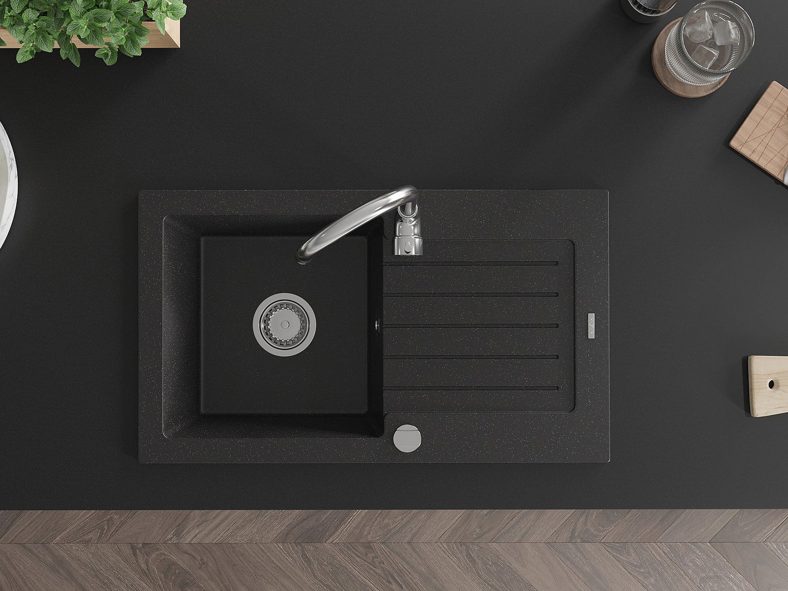 De gootsteen is gemaakt van hoogwaardig graniet. Het vormt een elegante en vooral praktische aanvulling op elke keuken, ongeacht de stijl. De hoge kwaliteit en duurzaamheid van graniet zorgen voor jarenlang gebruik.