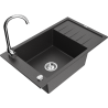 Mexen Elias granieten gootsteen 1-komparty met afdruiprek en keukenkraan Telma, zwart - 6511-77-670200-00