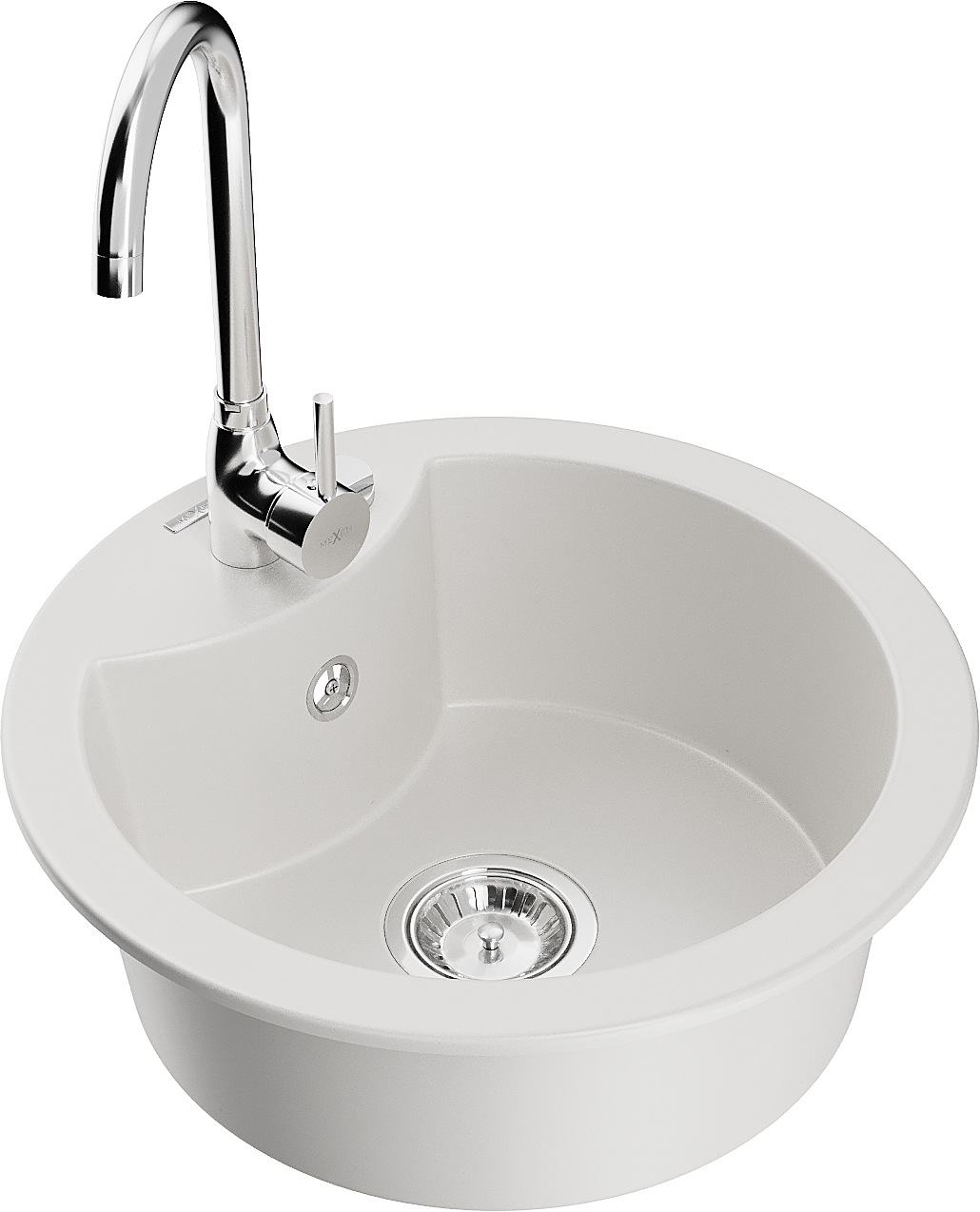Mexen Diego granieten gootsteen 1-komor met keukenmengkraan Telma, wit - 6512-20-670200-00