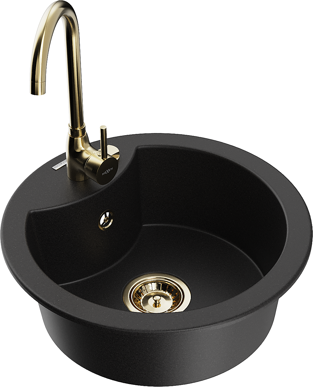 Mexen Diego granieten spoelbak 1-komor met keukenmengkraan Telma, zwart - 6512-77-670200-50