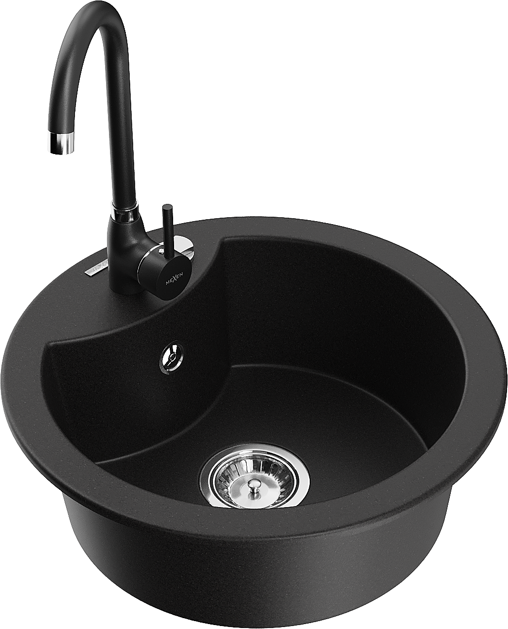 Mexen Diego granieten 1-komorige spoelbak met Telma keukenkraan, zwart - 6512-77-670200-70