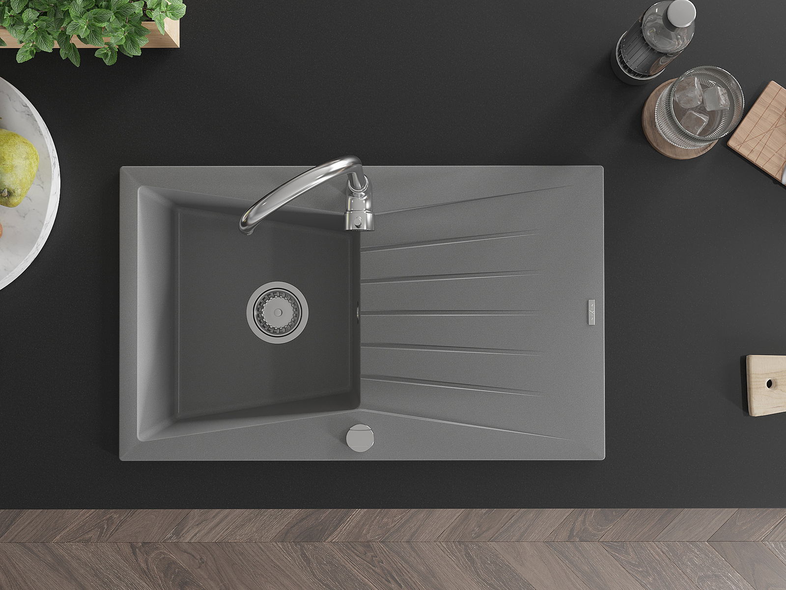 Mexen Cesar granieten gootsteen 1-kompartment met afdruiprek en keukenmengkraan Telma, grijs - 6514-71-670200-00