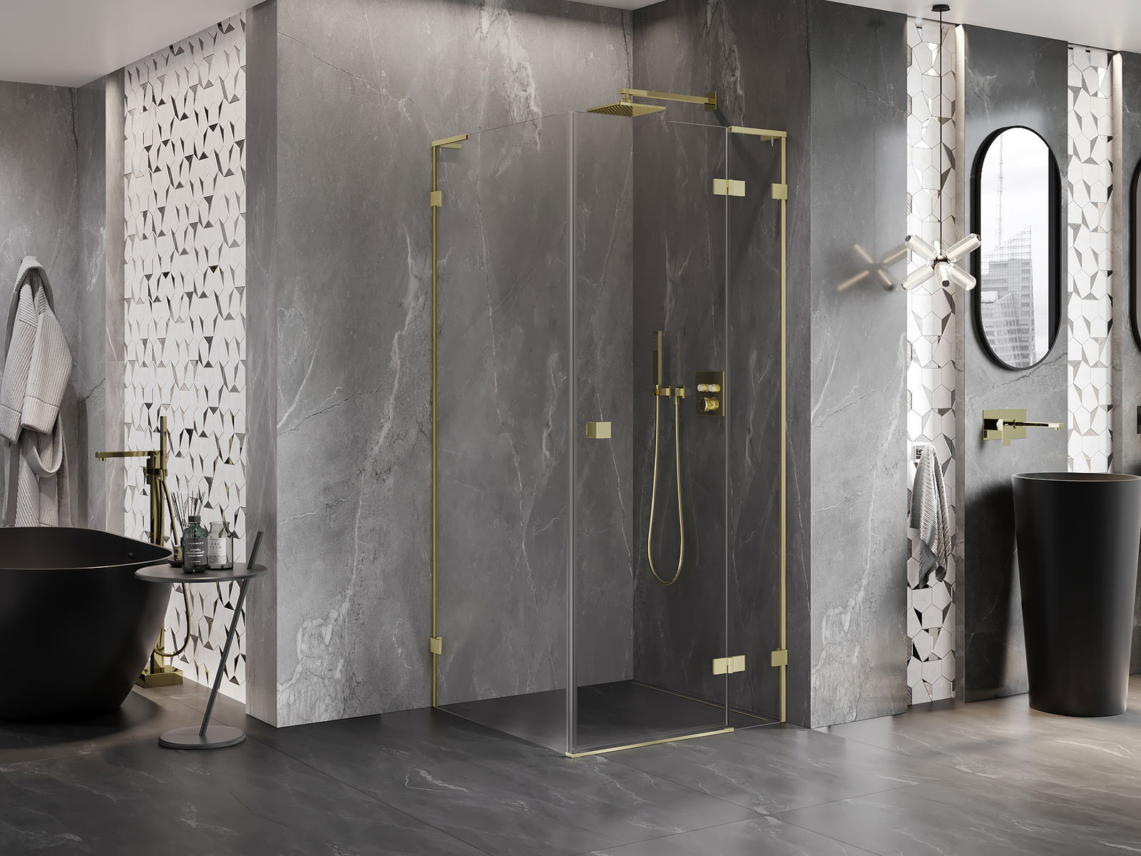 De beugels en scharnieren zijn gemaakt van zeer duurzaam messing en creëren een strak glazen oppervlak. Dit is een uitstekende keuze die elegantie, duurzaamheid en modern design combineert. Deze oplossingen verfraaien de esthetiek van uw douche en maken deze bovendien gemakkelijker schoon te houden.