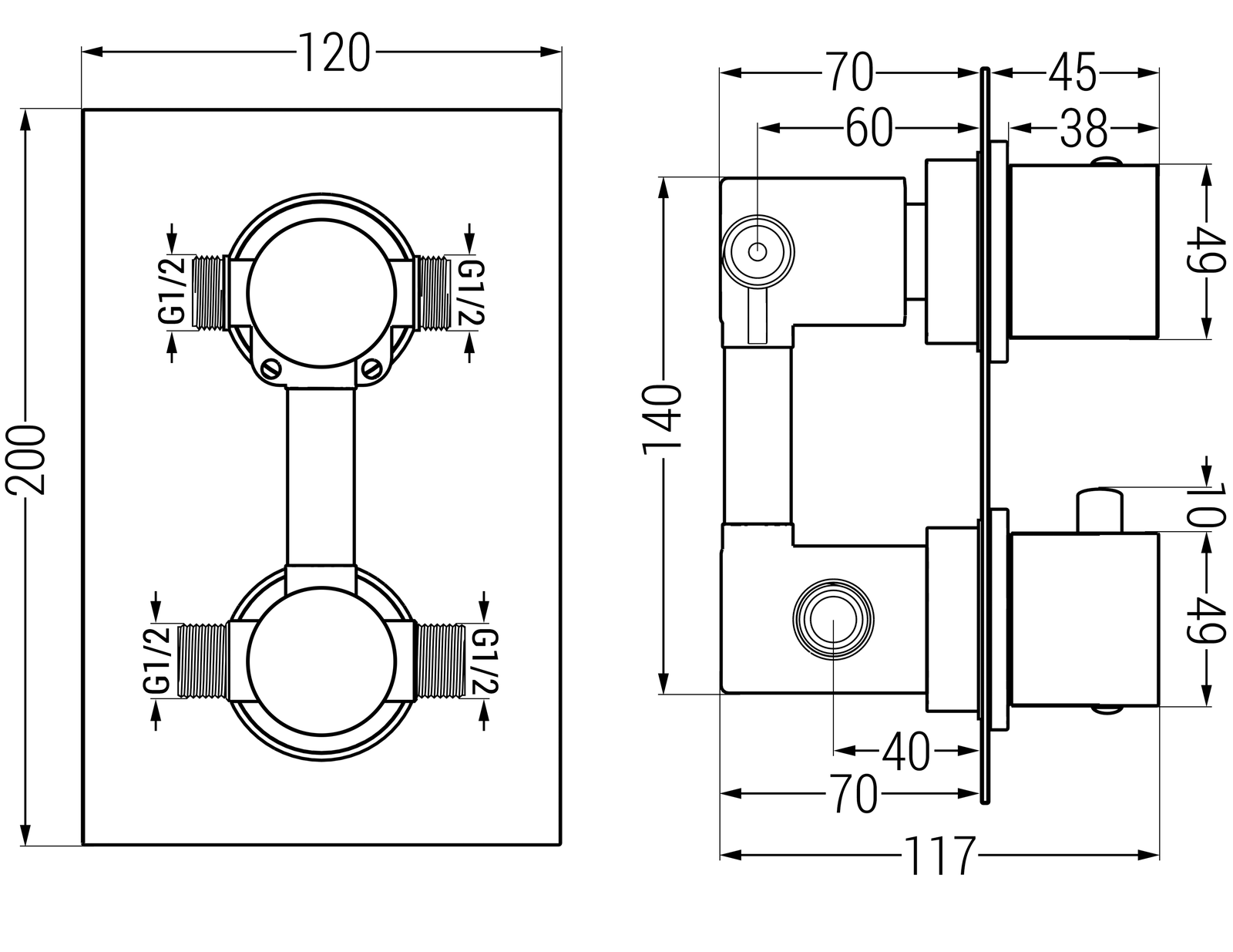 Aansluiting: 2x Ingang 1/2" en 2x uitgang 1/2"