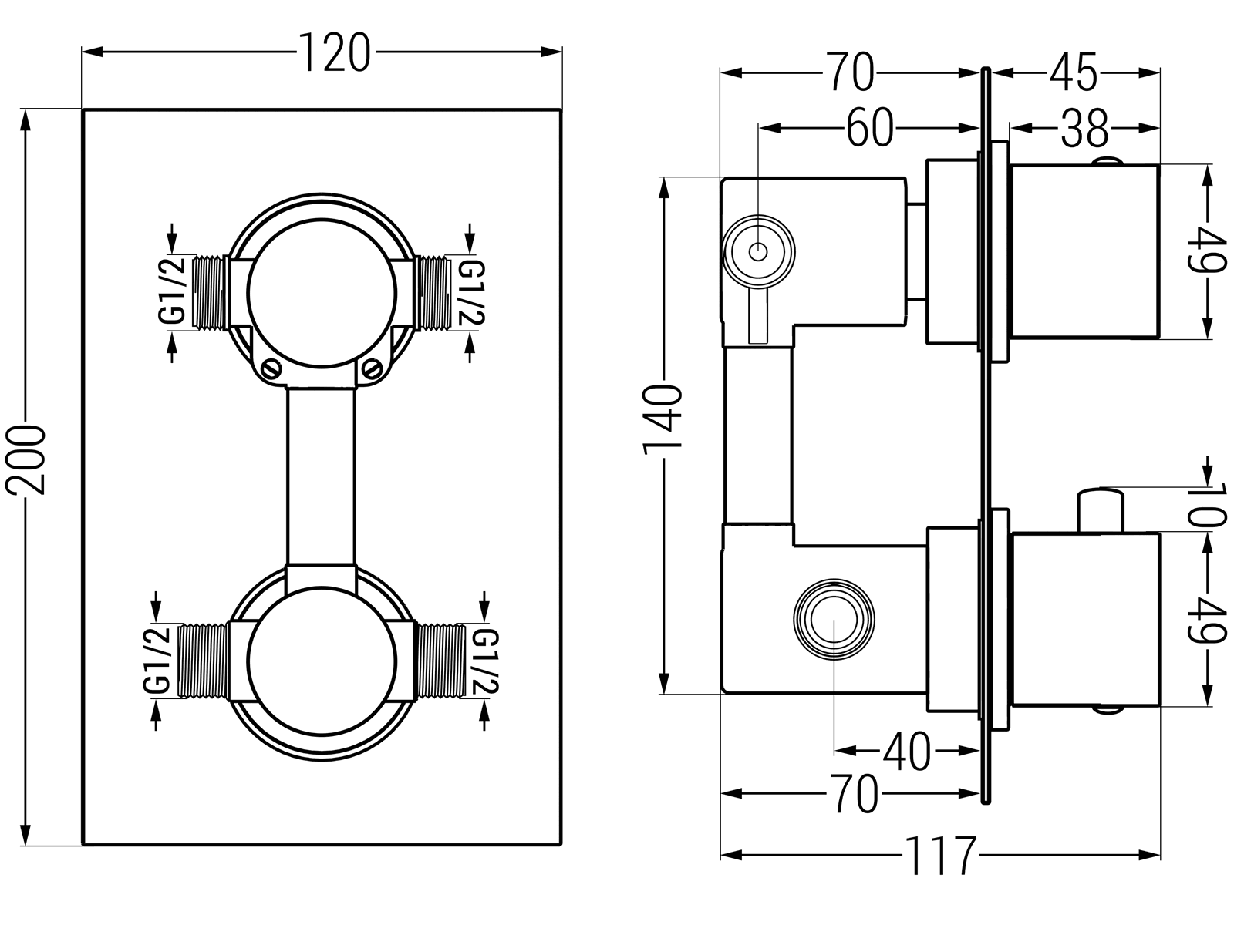 Aansluiting: 2x Ingang 1/2" en 2x uitgang 1/2"