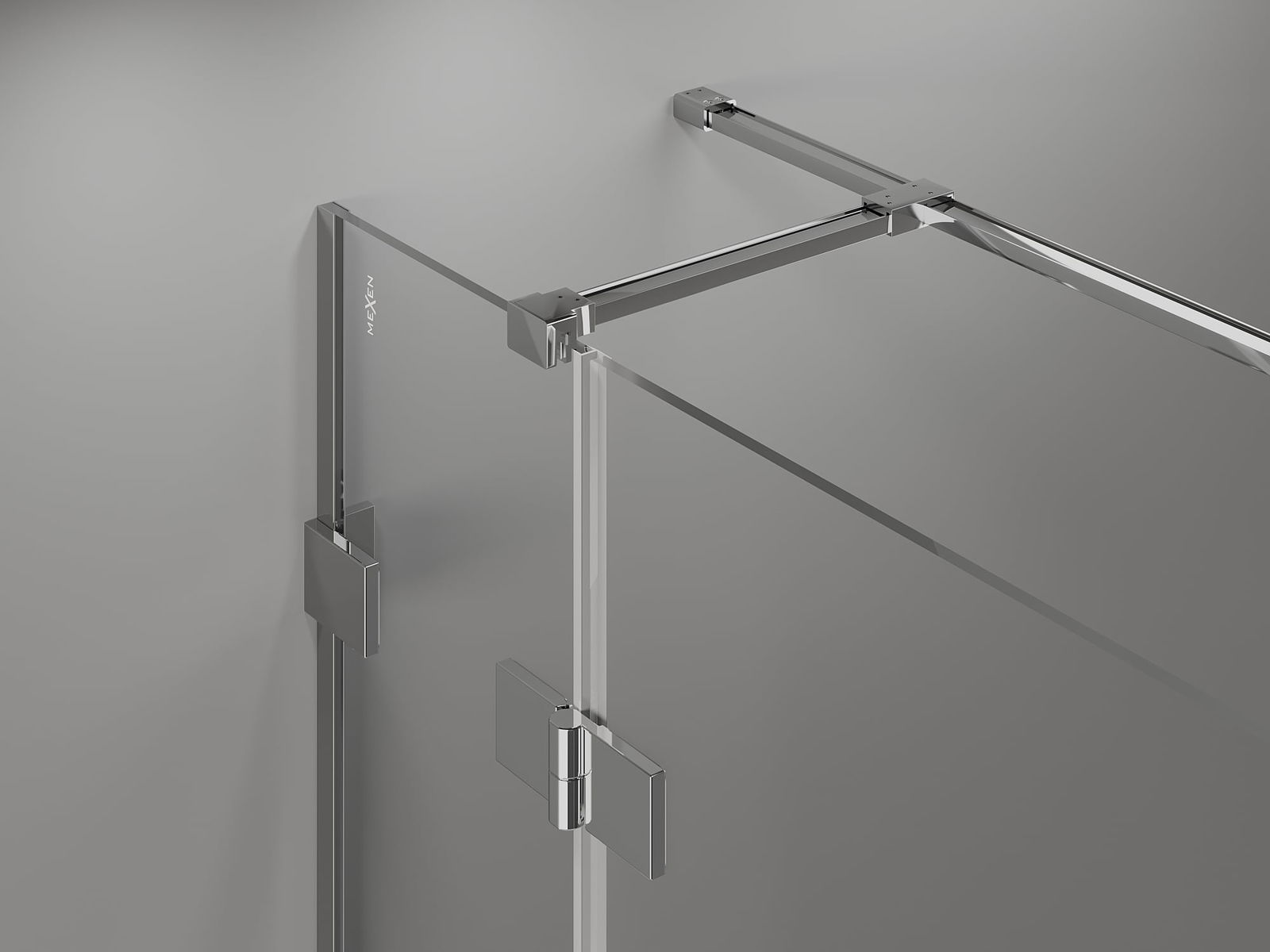 Klemmen en scharnieren zijn gemaakt van zeer duurzaam messing en vormen bovendien een effen glazen plaat. Het is een uitstekende keuze die elegantie, duurzaamheid en modern design combineert. Dankzij dergelijke oplossingen wordt de douche esthetischer en wordt het tegelijkertijd gemakkelijker om schoon te maken.